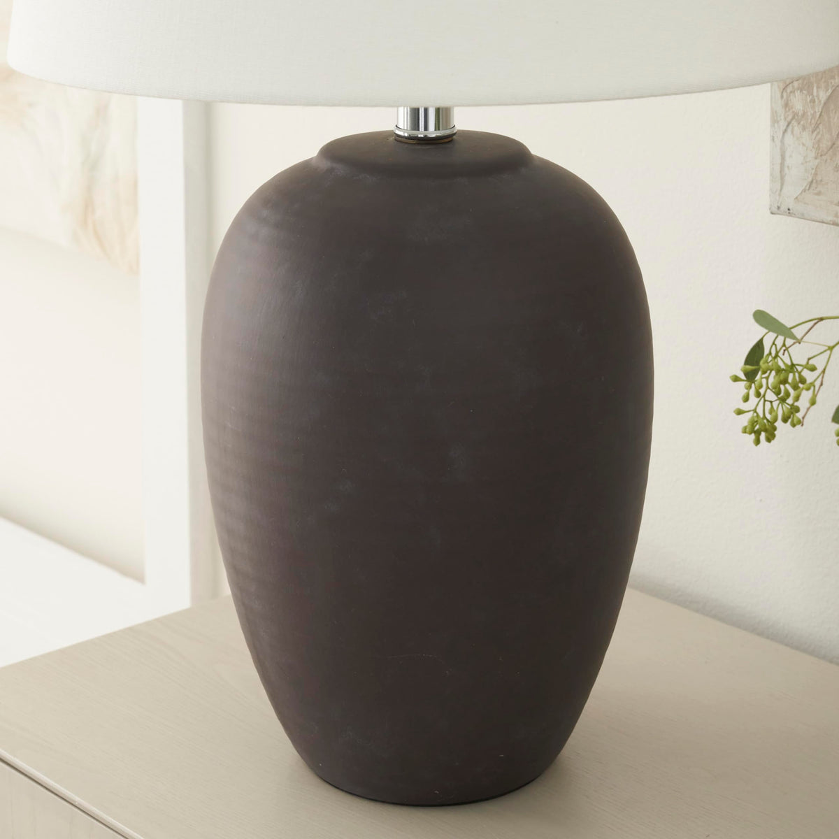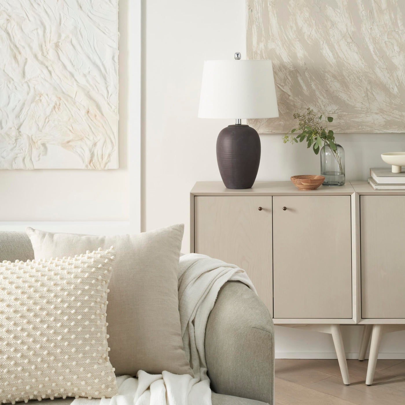 Bring Raw Beauty To Your Surroundings With This Modern Table Lamp. Made From Ceramic In A Classic Urn Shape, It Adds A Distinctively Organic Vibe To Your Side Table Or Nightstand. Enjoy A Relaxing Vibe With Its Tapered Drum Shade That Diffuses A Cool Glow.