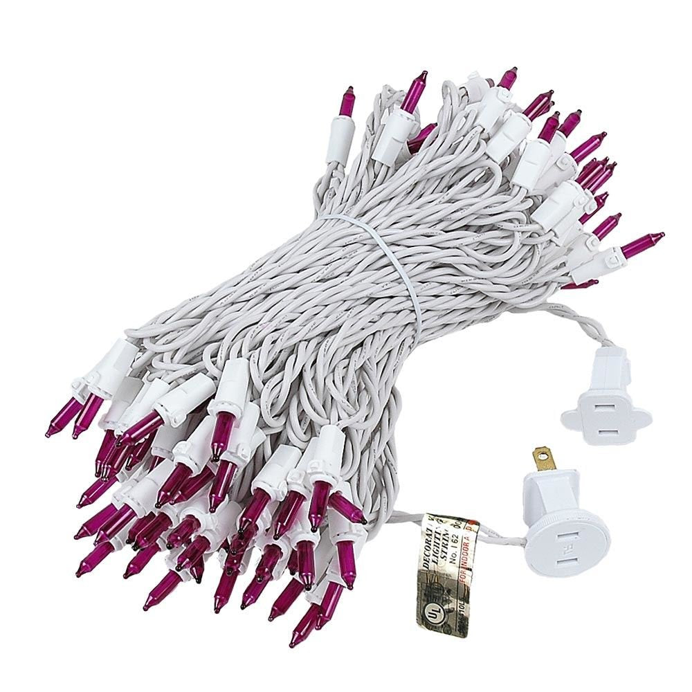 Novelty Lights 100 Light Purple Mini String Light Set, 50 Long, Indoor/Outdoor, White Wire, Model MRD-25B-4