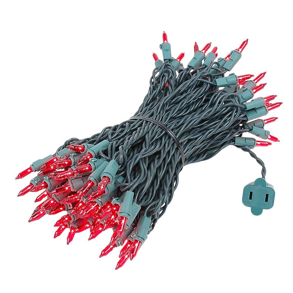 Novelty Lights 100 Light Red Christmas Mini String Light Set, Green Wire, Indoor/Outdoor Ul Listed, 50' Long