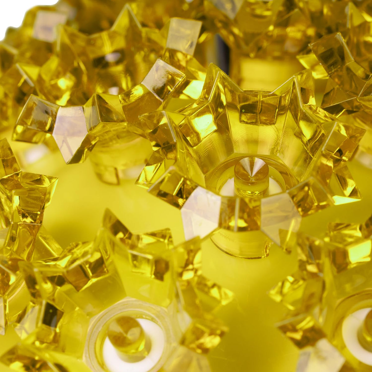 The Yellow Starlight Sphere lights feature a durable construction made from well-made plastic. Each sphere is adorned with 150 super bright 5mm wide-angle LED lights that provide true 360-degree illumination. The unique design includes a plastic incrystalin or instarburstin effect around each bulb, allowing light to radiate in every direction. Rated for 40,000 hours of use, these lights are ideal for professional decorators and homeowners who seek long-lasting performance. The bulbs are full wave rectified, ensuring flicker-free illumination for a consistent and bright display.