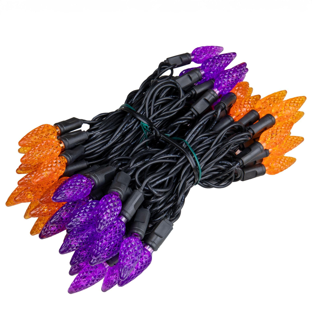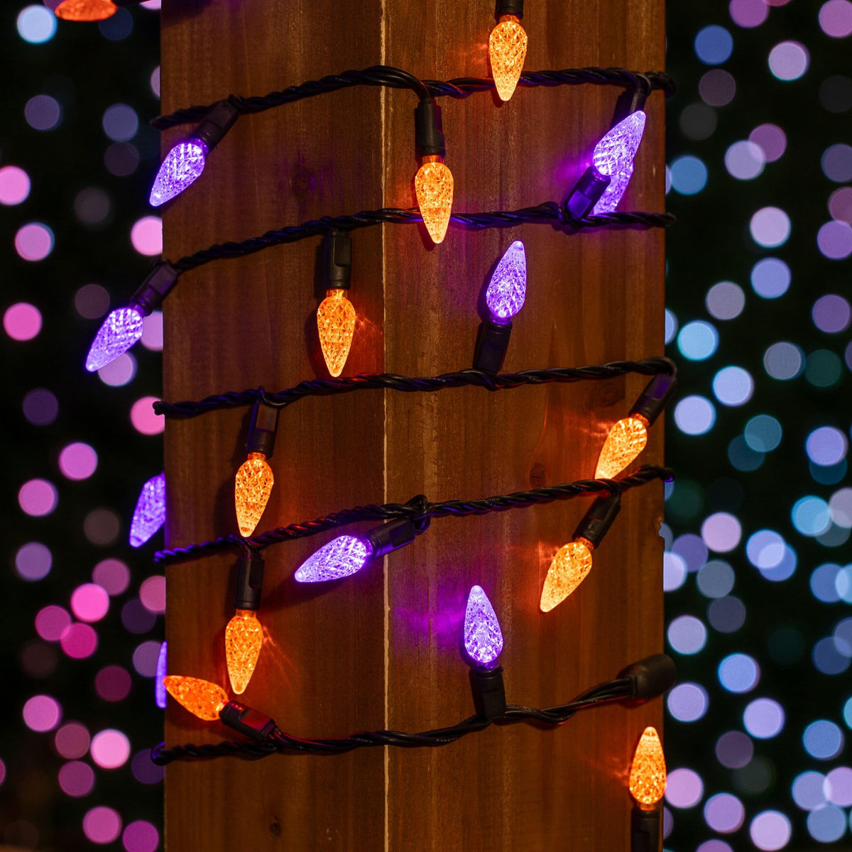 Q: What makes these C6 LED string lights a good choice for events other than Halloween?A: The vibrant purple and orange colors of the Novelty Lights C6 LED string lights make them versatile for various events beyond Halloween, such as weddings, parties, and festive gatherings. Their high-quality design and energy efficiency ensure that they provide a beautiful ambiance for any occasion, creating a magical atmosphere that enhances the overall experience.
