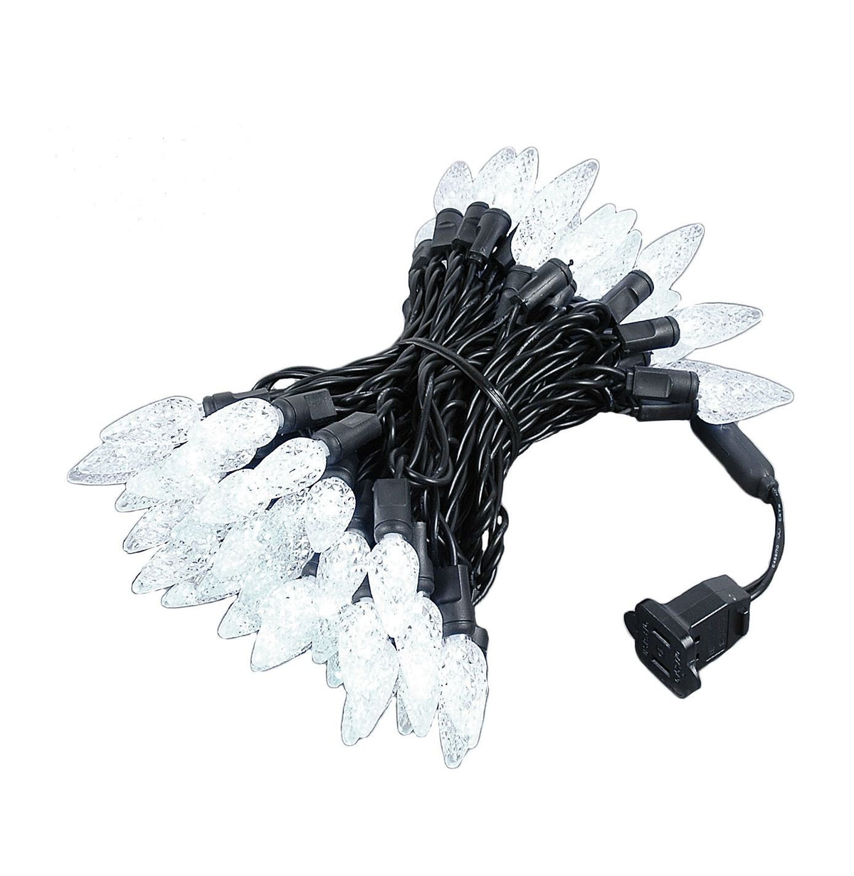 Q: What color do these lights emit?A: The Novelty Lights C6 LED string lights emit a pure white light, adding a festive and elegant touch to any setting.