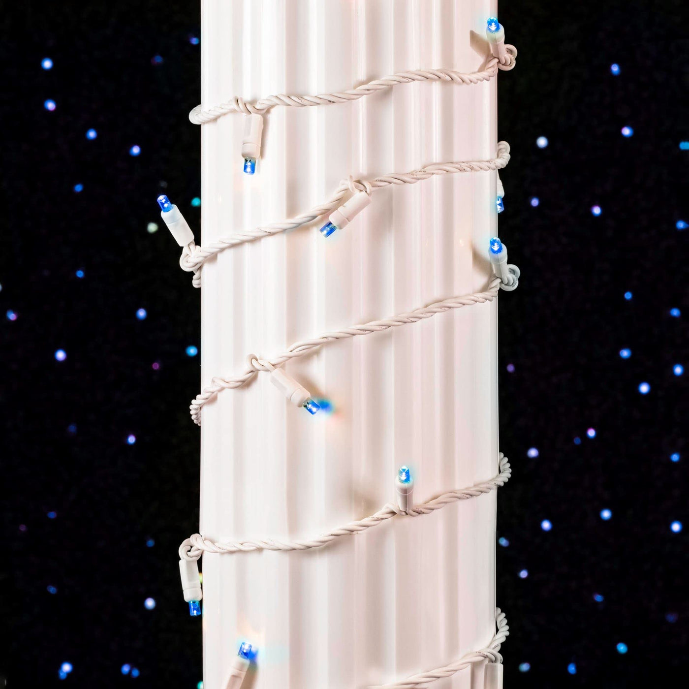 Novelty Lights 25 Feet 50 Light Blue Led Christmas Lights White Wire, Connectable Mini String, Indoor/Outdoor, Commercial Grade,