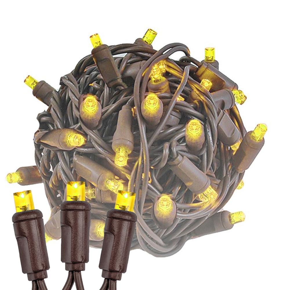 Novelty Lights 25ft 50 LED Yellow Christmas String Lights, Dimmable, Connectable, Brown Wire, UL Listed, IP55