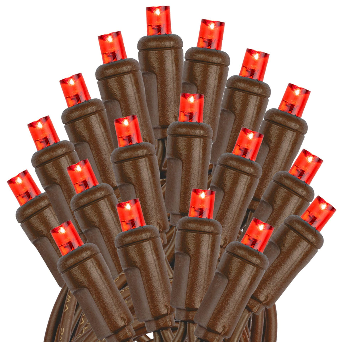 Novelty Lights 25ft Red Christmas String Lights, 50 LED, Brown Wire, Dimmable, Connectable, UL Listed, IP55