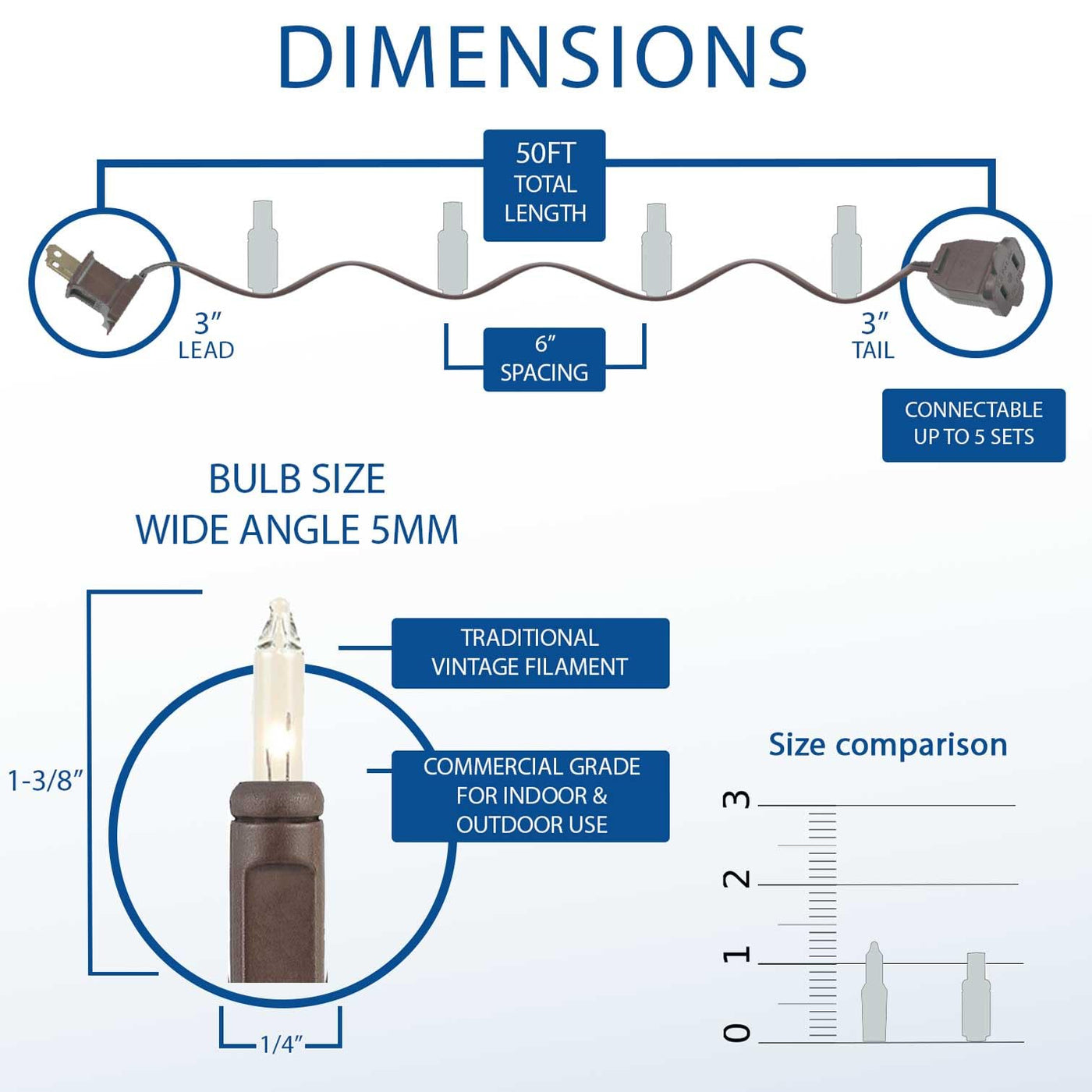 Novelty Lights 50 Feet 100 Bulbs Traditional Incandescent Mini Lights, Multicolor On Brown Wire With 6 Spacing, Commercial Grade