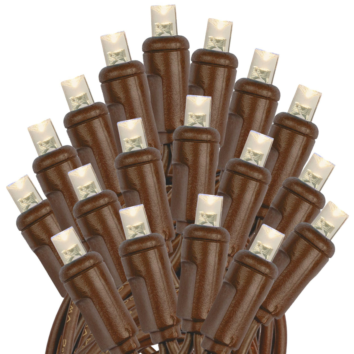 Novelty Lights 50 Light Led Mini Christmas String Lights, 25Ft, Warm White, Brown Wire, Model Mrd-25B-2, Outdoor Patio Lighting