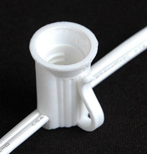 This string light features 25 E12 base candelabra sockets, allowing you to use a variety of compatible incandescent or LED bulbs, including C7, G30, G40, and G50. The durable construction ensures safe usage indoors and outdoors, making it an ideal choice for patio lighting, roofline decorations, or festive event setups. The stringer is designed with 6-inch spacing between sockets and a 3-inch lead on both ends for easy installation.