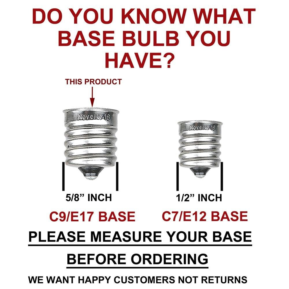 Q: What type of base do these bulbs have?A: These bulbs feature an E17/C9 intermediate base, which is compatible with standard C9 stringers.