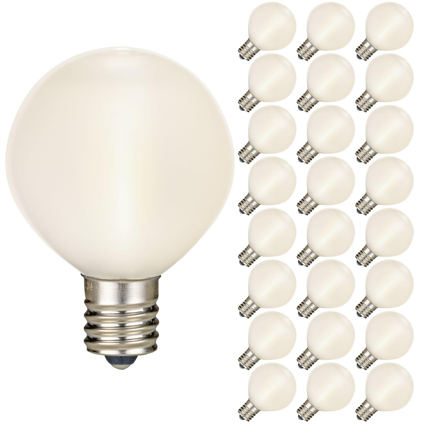The G50 bulbs are constructed from durable plastic, ensuring they are shatterproof and weather resistant. This makes them an excellent choice for outdoor use, whether by the poolside or adorning your patio. With a lifespan of 10,000 hours, these bulbs provide long-lasting illumination while consuming only 0.6 watts of power, equivalent to a traditional 7-watt incandescent bulb. Each bulb features a 12mm E17/C9 intermediate base and measures 50mm in diameter, making them compact and easy to install in any light fixture.