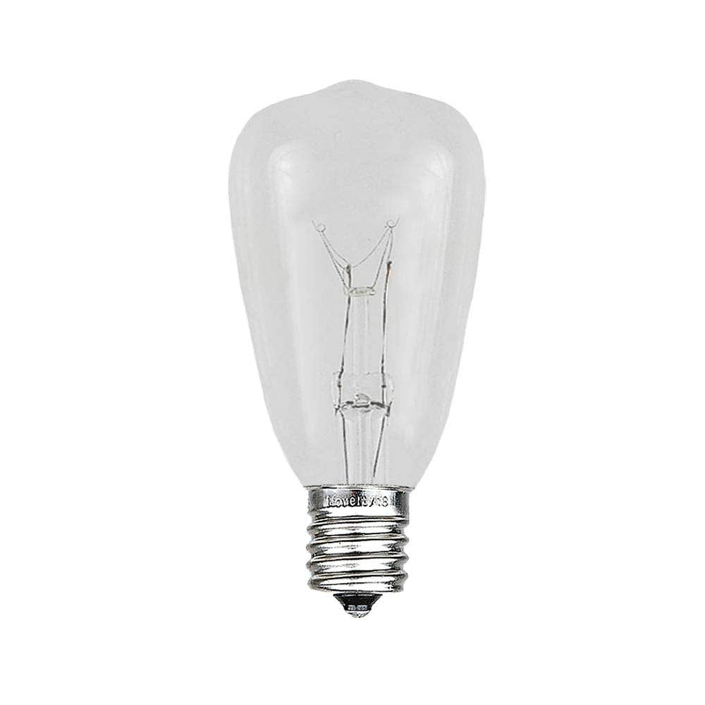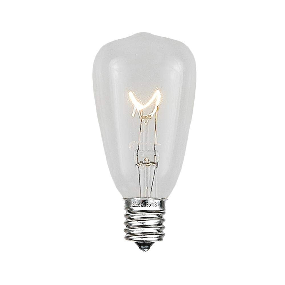 ST38 Incandescent Edison;Replacement Bulbs - Outdoor Lighting - String Lights - Patio String Lights Novelty Lights Edison-shaped, ST38 Bulbs create a fun, unique look when decorating for any special occasion. Perfect for weddings, tents, patios, awnings and Christmas decor, these round, 7-watt, 130-volt bulbs will screw into our C9 string, commercial grade intermediate base (E17) Heavy Duty string, or Vintage twisted wire with bakelight socket string. These Edison shape replacement bulbs are slated to last for 3,000 hours of maintenace free use. Our ST38;clear bulbs are sold in packs of 25 and C9 strings are sold separately. 25 Pack of sT38 Edison Shape 7 Watt Bulbs Screws into C9 socket/Intermediate Base (e17) Long Life 3,000 Hour Bulbs 130 Volt 7 Watt Size: 3-3/4''High x 1-1/2'' Wide - Racquet Ball Size Nickel Plated E-17 Base REPLACEMENT BULBS ONLY - C9 STRINGS SEPARATELY Your satisfaction is our #1 priority and if you have any issues at all please us and we would be more than happy to assist. Ordering the wrong size bulb is common so please reach out with any bulb size questions.