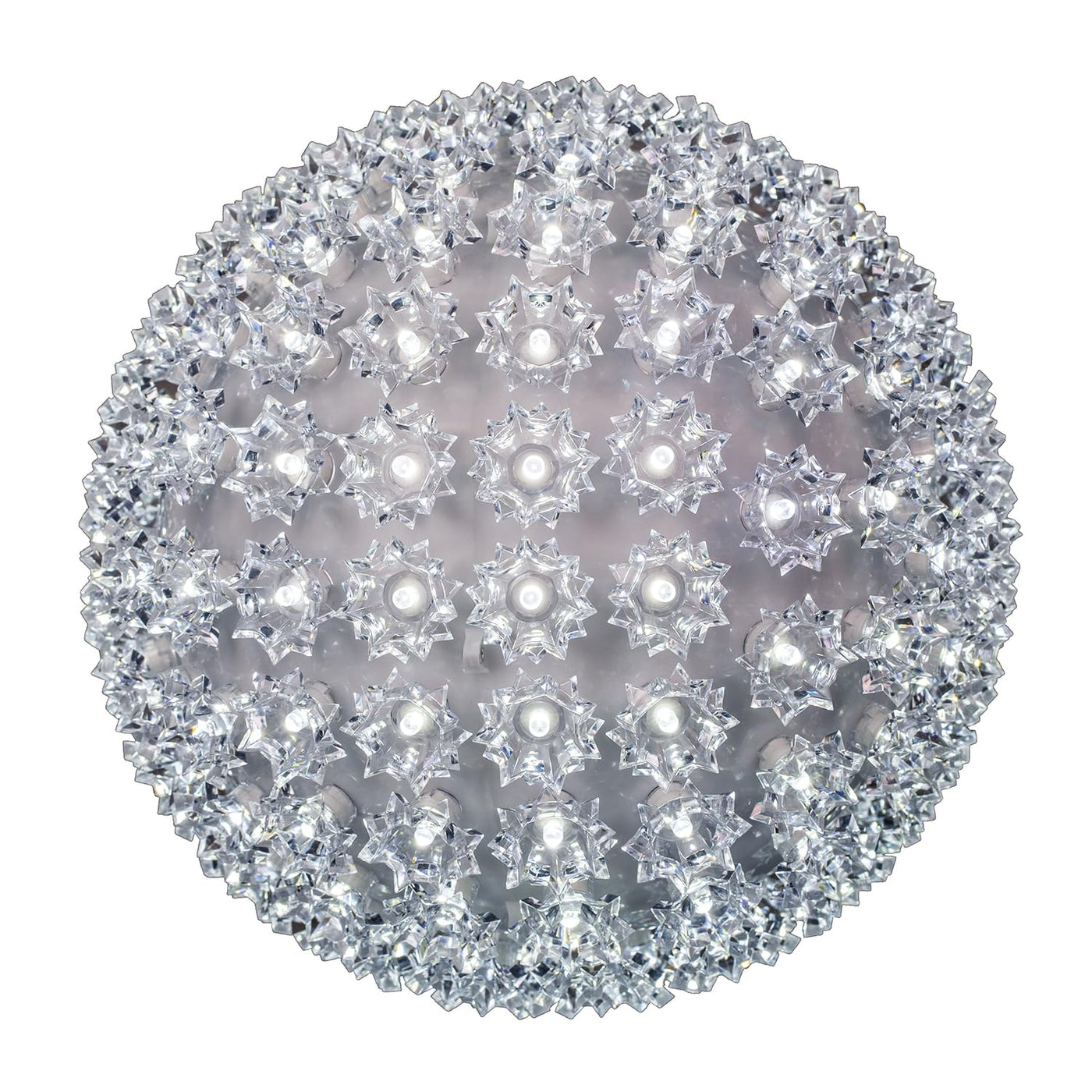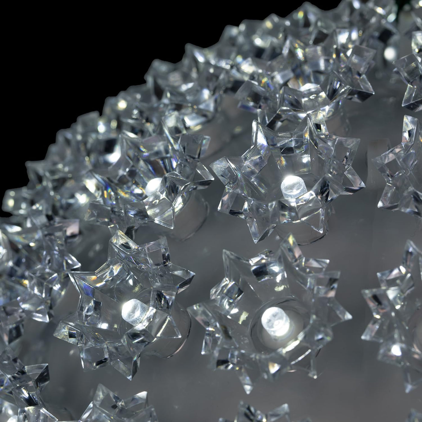 This starlight sphere features a durable construction with 150 super bright 5mm wide-angle LED lights that provide true 360-degree illumination. Each bulb is surrounded by a plastic incrystalin design, which enhances the dispersion of light and creates a dazzling effect. Built to withstand various weather conditions, these spheres are made from well-made materials, ensuring long-lasting performance and reliability.