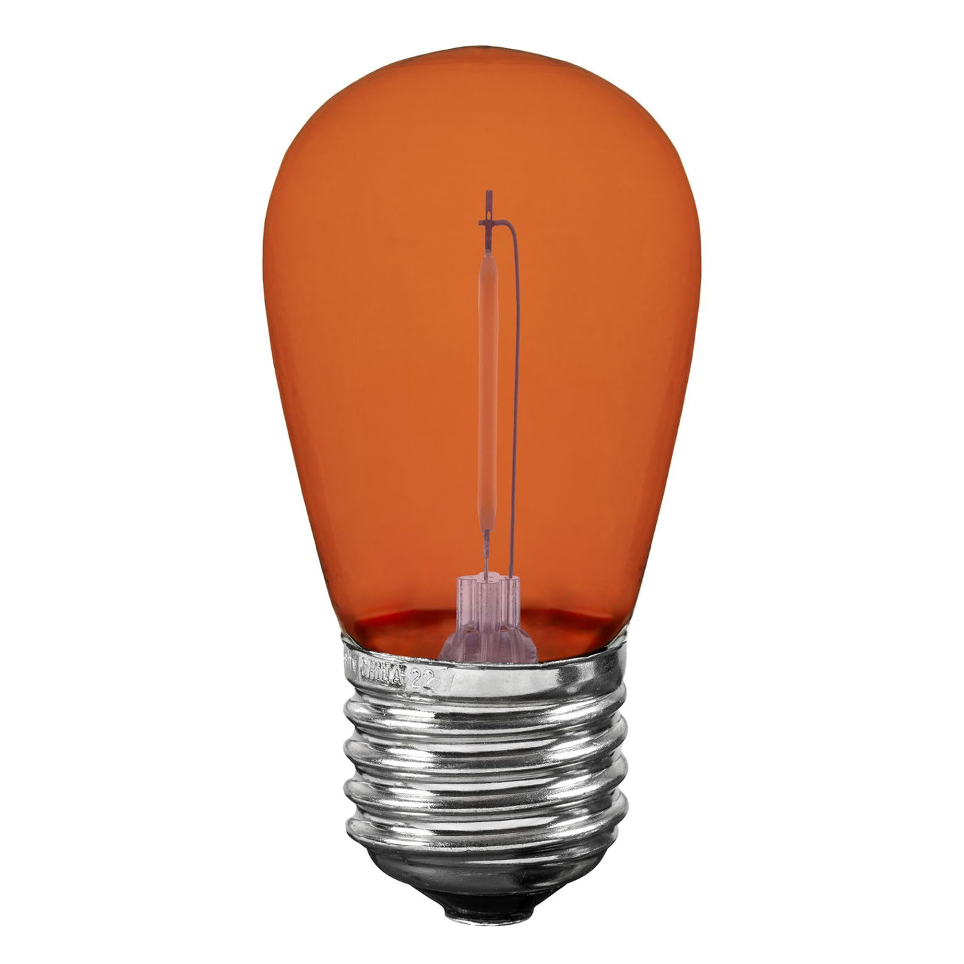 Q: What color options are available for these bulbs?A: The Novelty Lights S14 LED bulbs are available in a variety of color options, including a vibrant orange, allowing for customized ambient lighting.
