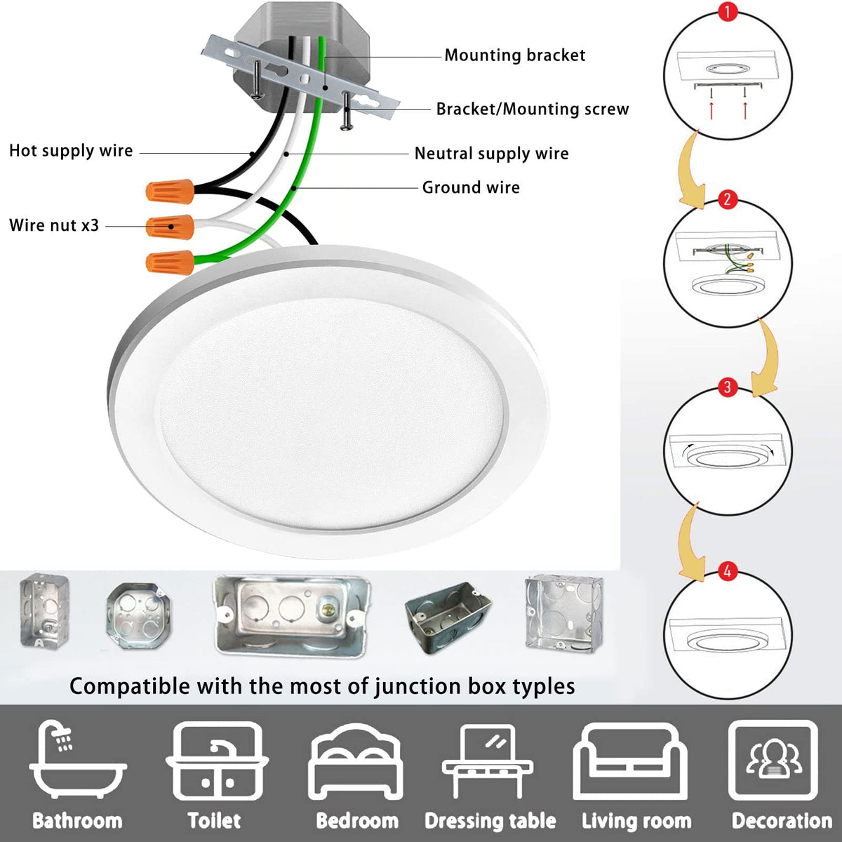 Novelux 5'' Flush Mount Ceiling Light Dimmable, 5000K White Led Ceiling Light Ultra Thin Round Ceiling Light Fixture For Bedroom, Bathroom, Kitchen, Hallway, Basement, Closet, 3 Pack