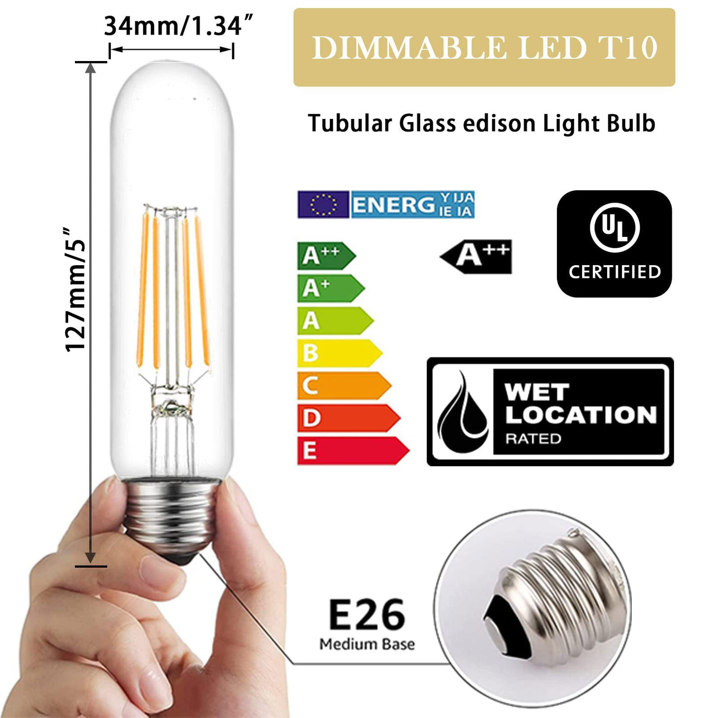NOVELUX 5 Inch 4000k Neutral White E26 Led Bulb 60 Watt Dimmable,6W T10 Led Bulb Clear Glass Long Tubular Light Bulbs,T9 Bulbs f