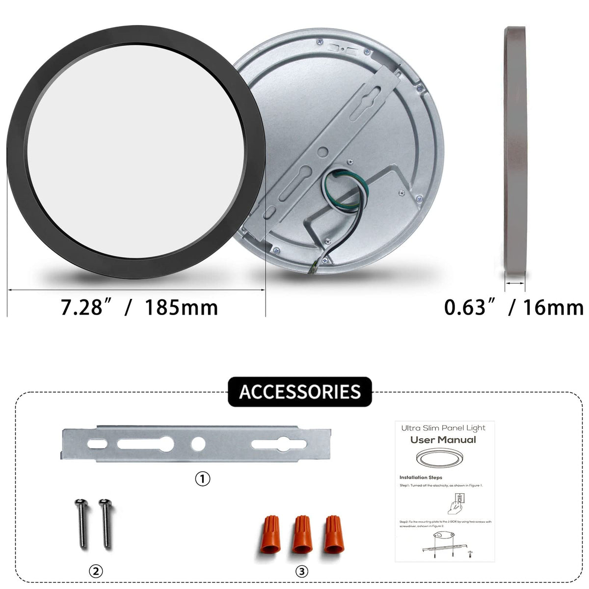 NOVELUX 7 Inch LED Flush Mount Ceiling Light, Dimmable 5000k, Ultra Slim Round Panel, Black, Model CL-7IN, 1 Pack