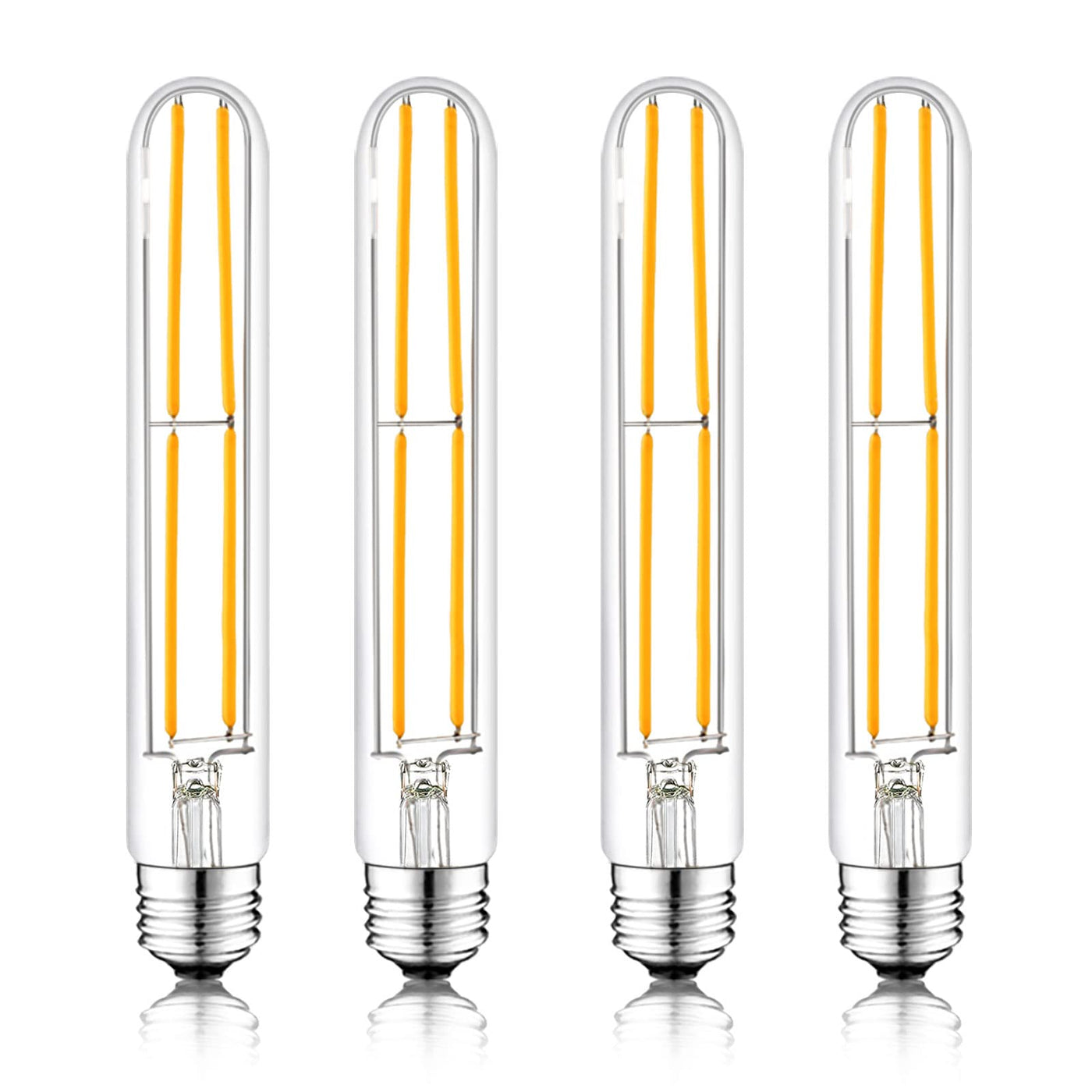 NOVELUX E26 LED Bulb 60W Dimmable T10 Glass Light Bulbs 7.3 Inch 2700K Soft White (4 Pack)
