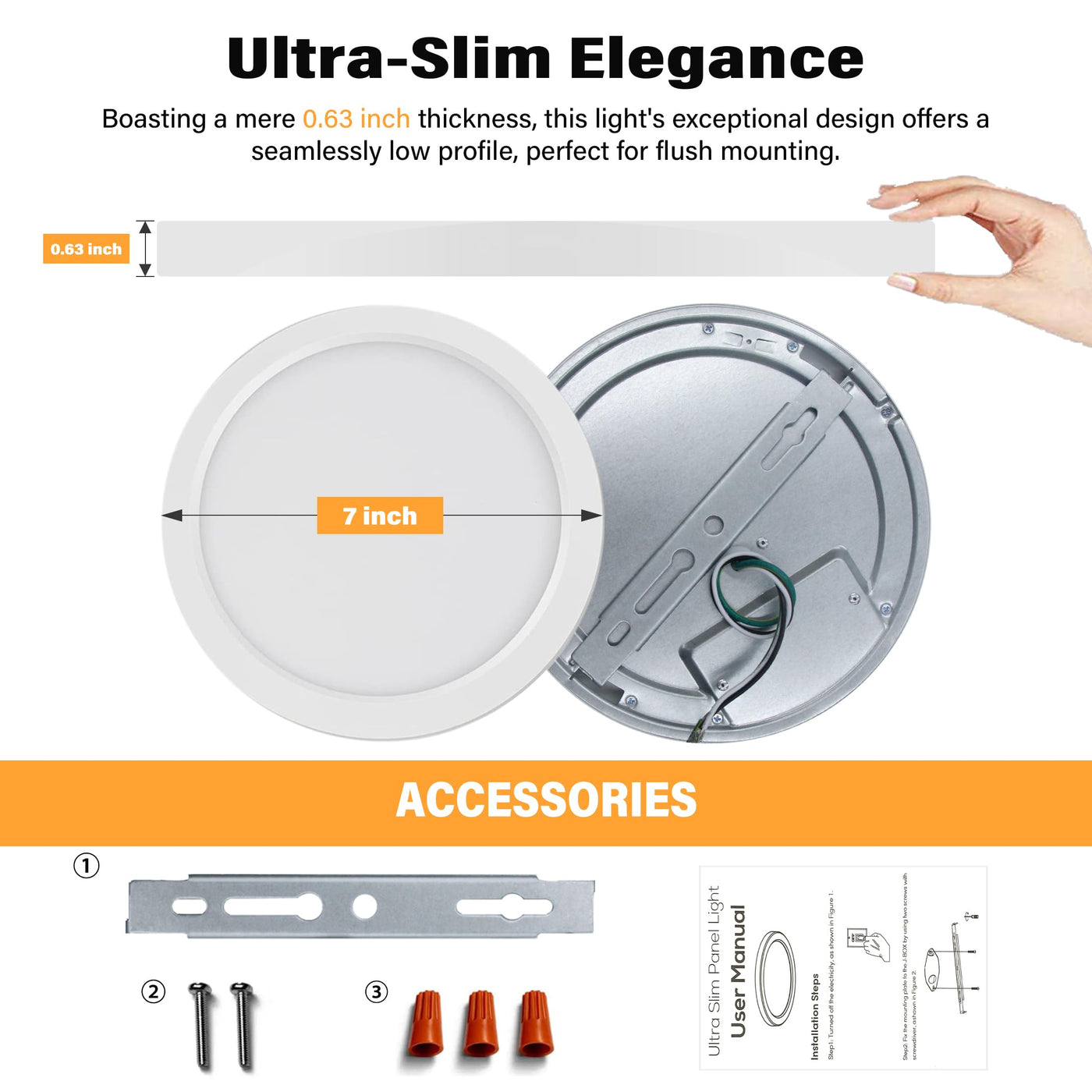 Novelux Etl 7 Inch Small Led Flush Mount Ceiling Light Dimmable,5000K Daylight Ultra Slim Round Flat Panel Ceiling Light Fixture,Modern Ceiling Lamp For Closet,Kitchen,Bathroom,Hallway (26 Pack)