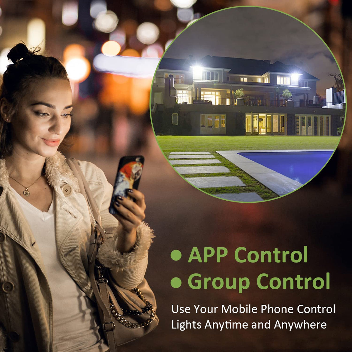 Novostella 2 Pack 100W Smart Led Flood Light, Total 18000Lm Super Bright Flood Light Outdoor Ip66 Waterproof, Tunable White 2700