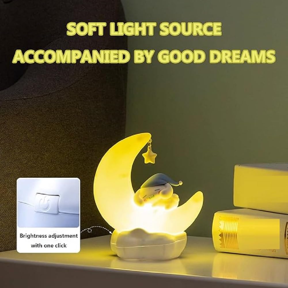 noxozoqm Cute Moon Night Light, Kawwai LED Light Desk Lamp, Bedroom Decor Rechargeable Birthday Present Surprise Gift for Girls