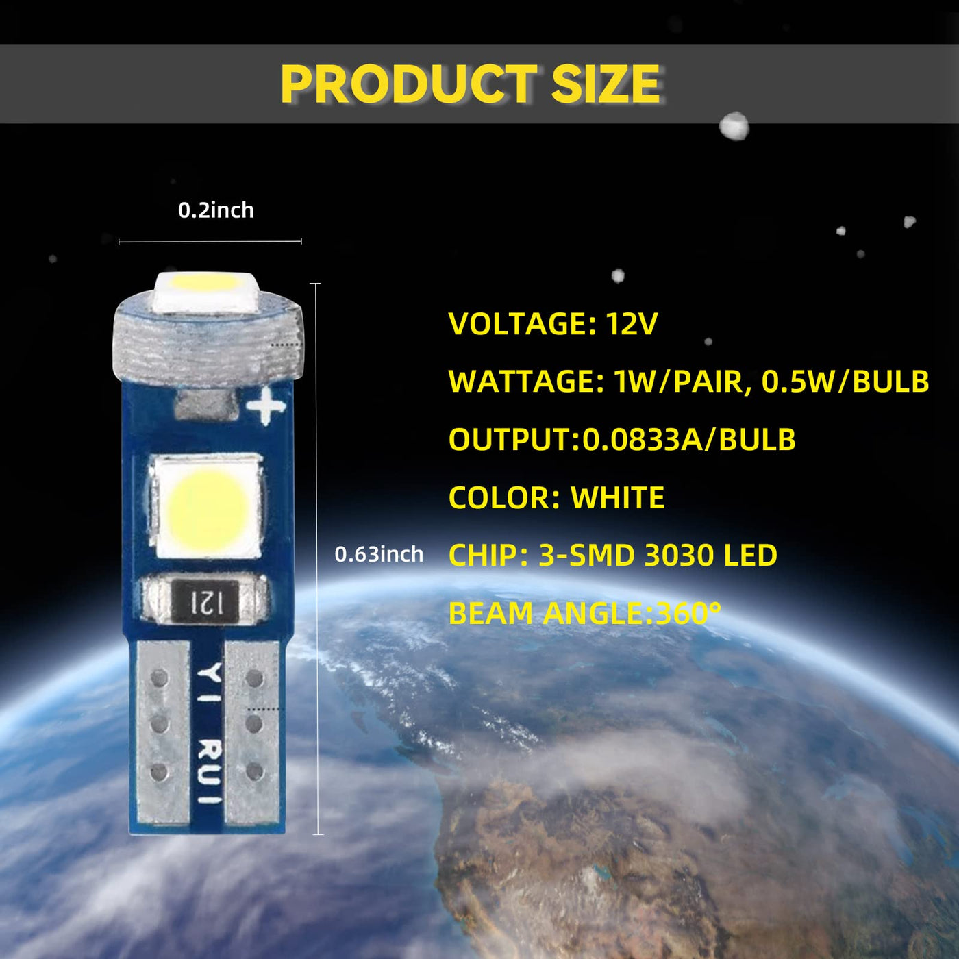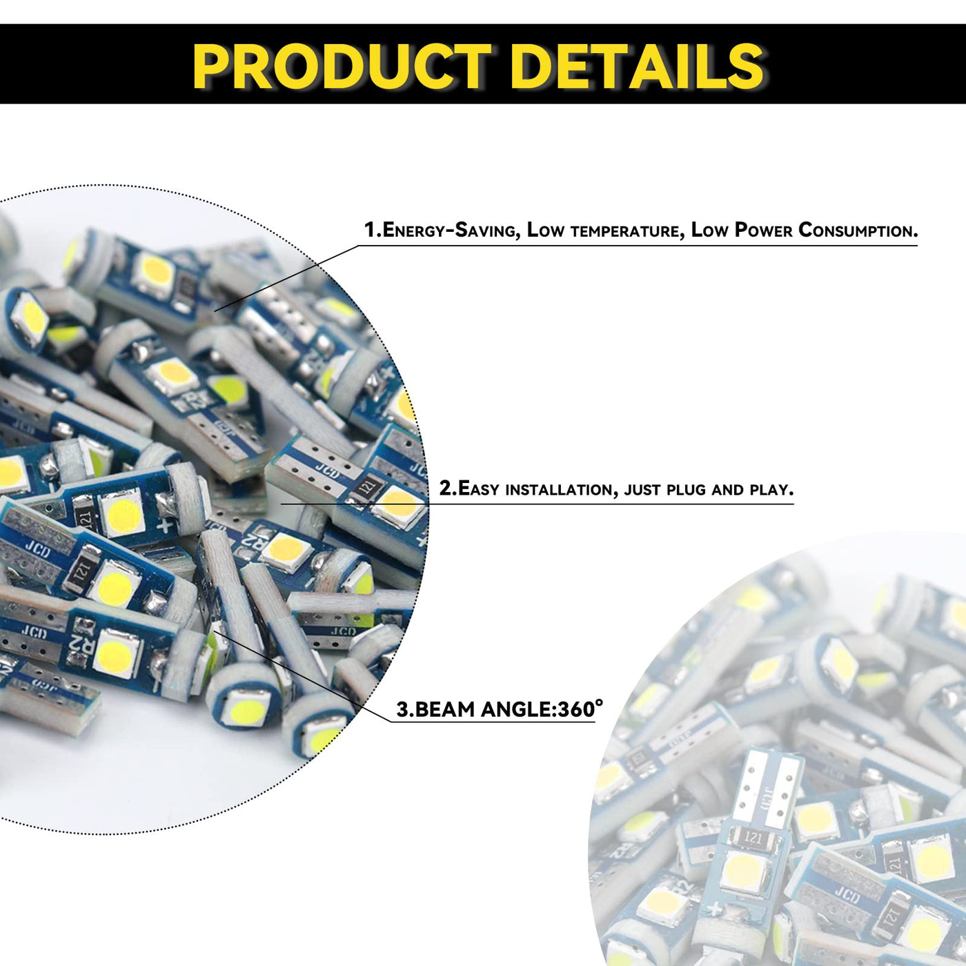 Compatible: Dashboard lights, side light, indicator light, instrument light, air conditioning indicating lamp, center console light, interior light, etc.