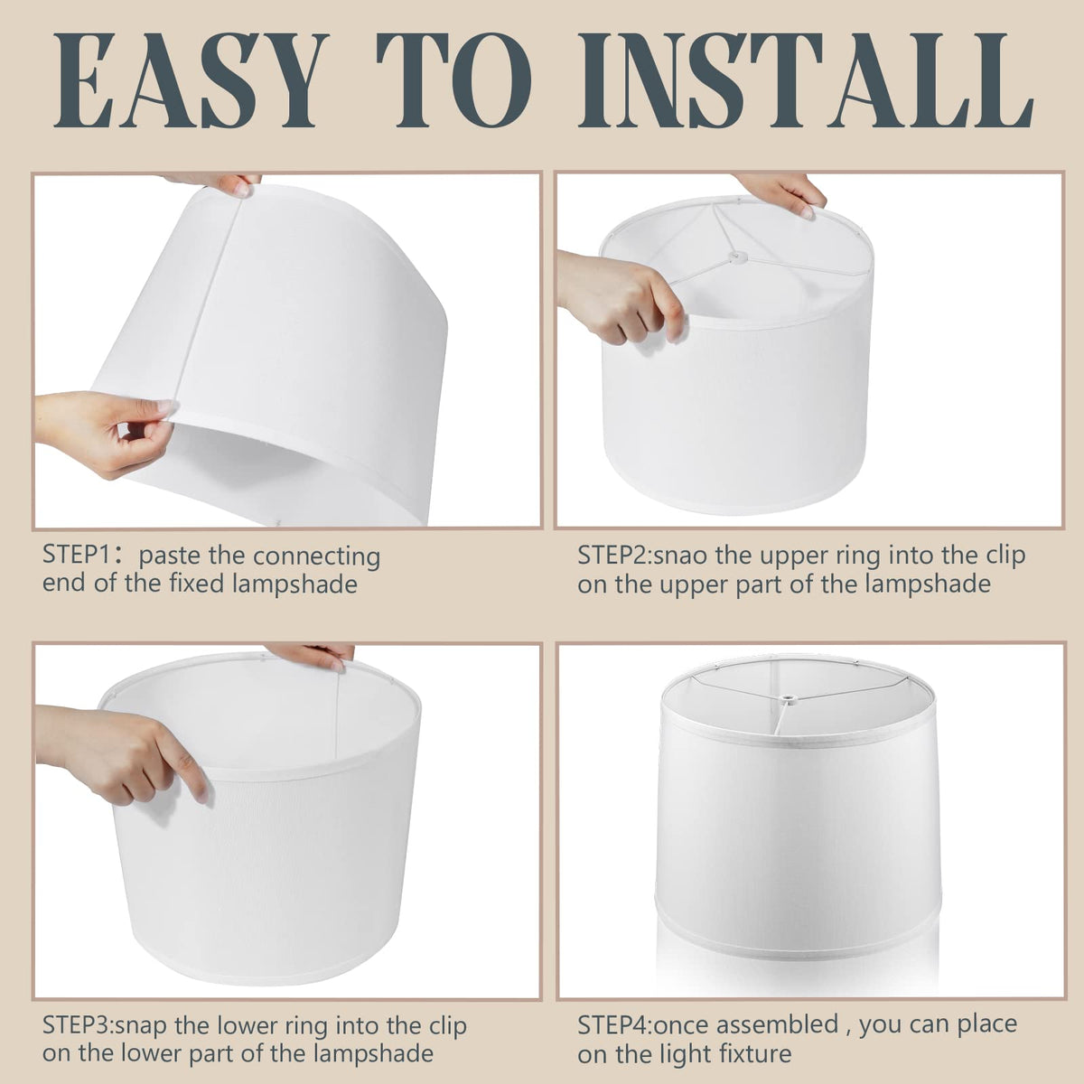 Features: Size details: The lamp shades for floor lamps measure about 11.6 inches/ 29.46 cm in top diameter, 12.6 inches/ 32 cm in bottom diameter and 9.8 inches/ 24.89 cm in height, the screw thread diameter in the middle measures about 0.43 inch/ 1.1 cm. Carefully read and check whether the size match your lamps before purchase. Rustic and farmhouse: The replacement lamp shades for floor lamps are printed in rustic and farmhouse white color, which can fit most home styles, natural and comfortable, applying them for lamps can protect your eyes while creating a warm atmosphere, bringing you a good mood. Specifications: Material: line fabric Color: white Size: as pictures show Notes: Manual measurement, please allow slight errors on size. The color may exist a slight difference due to different screen displays. Only works with lights or bulb clip adapters with harp stand. Make sure your lamp has the harp stand.