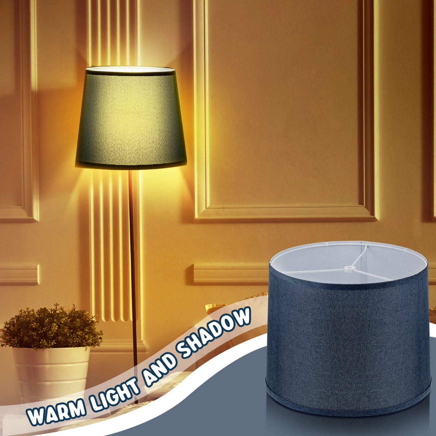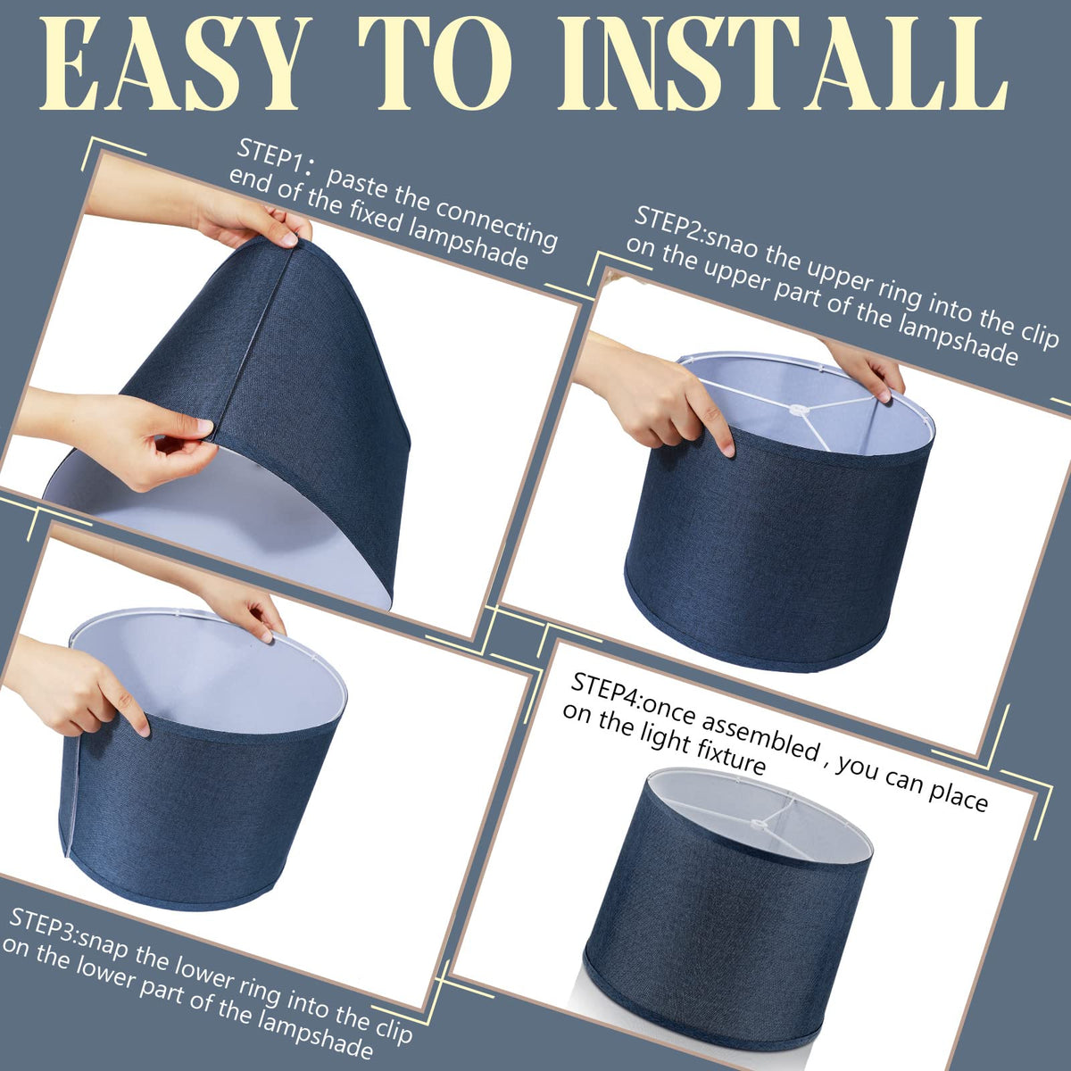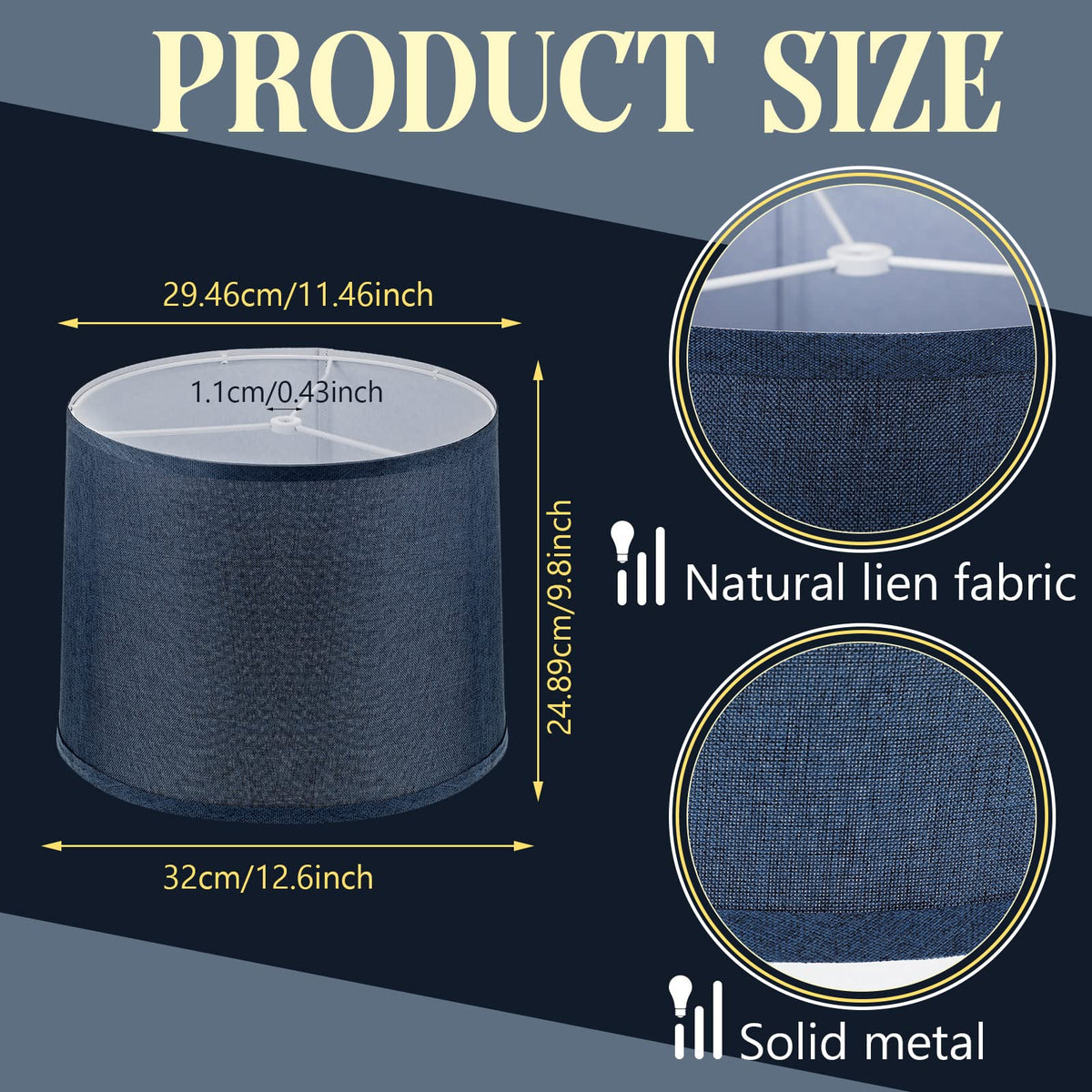 Nuanchu Set of 2 Drum Lampshade Natural Linen Lampshade medium 11.6 Inch Top x 12.6 Inch Bottom x 9.8 Inch High Classic Fabric Lamp Shades for Table Lamp, Floor Lamp (Navy Blue)