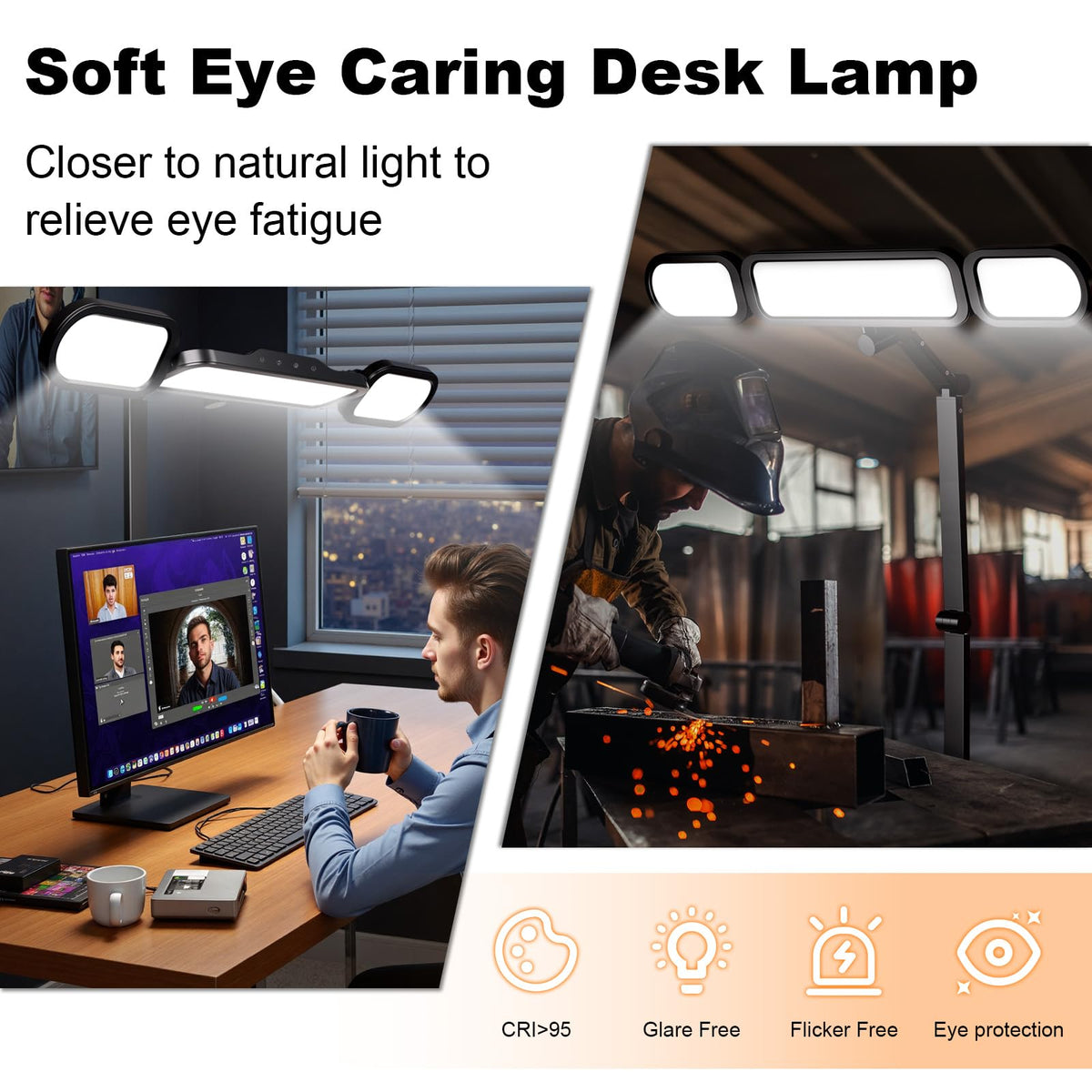 Nuerpo Led Desk Lamp With Clamp,Adjustable Swing Arm Desks Lamps For Home Office,Dimmable Tempering Eye Care Desk Light Bright M