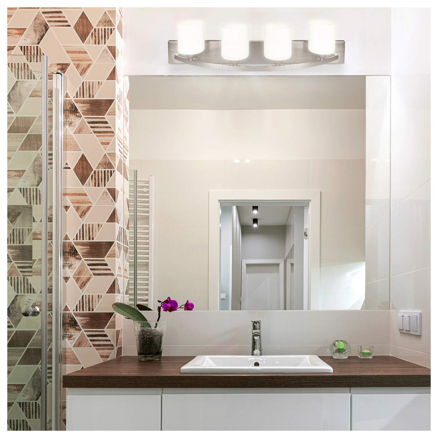 This Nuk3y modern bathroom vanity light with easily match and upgrade any bathroom design. The smooth refine curved lines on our glass shade will provide a elegant frosted look. The design of the light will provide bright and soft lighting. DIY install to connect directly to the reserved wire. Should you have any problem or concern , please contact us.