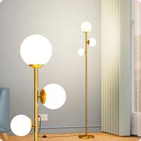 This Gold Floor Lamp Comes With A Creamy White Frosted Glass Shade, Which Is Smooth And Delicate, And Can Diffuse Soft And Bright Warm Light (3000K), Which Can Instantly Create A Warm And Comfortable Environment For Your Home. This Floor Lamp Is Like A Work Of Art, Can Match A Variety Of Home Styles, Suitable For Living Room, Bedroom, Study, Office And Other Environments. Floor Lamp Parameters: Light Source: Led Voltage: 110V Power: 21W Color Temperature: 3000K Switch: Foot Switch Product Color: Gold Packaging: Floor Lamp X1 Led Bulb X3(3000K Warm Color) Base X1 Instruction Manual X1