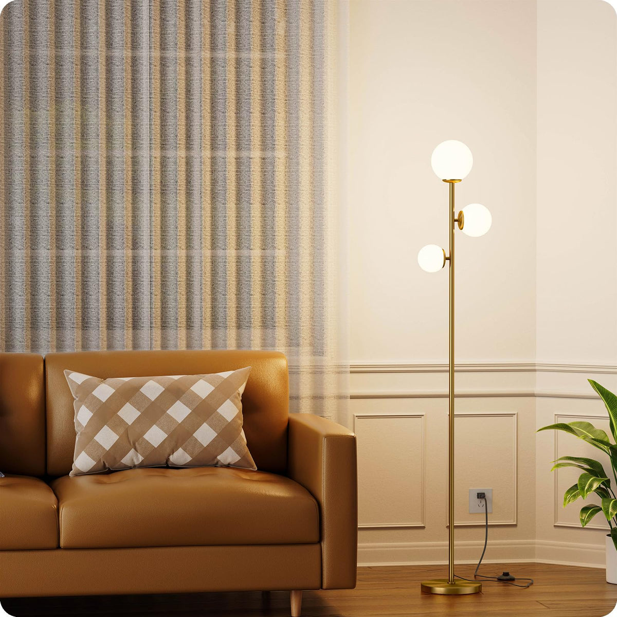 Nukanu Floor Lamp With 3 Frosted Glass Shades,Stangding Lamp Floor Lamps For Living Room Bedroom Office With 3 Led Bulbs,Tall La