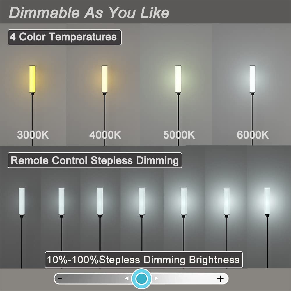 Nukanu Black Floor Lamp with Remote Control - Stepless 3000K-6000K Adjustable Brightness - Perfect for Living Room, Bedroom, Office
