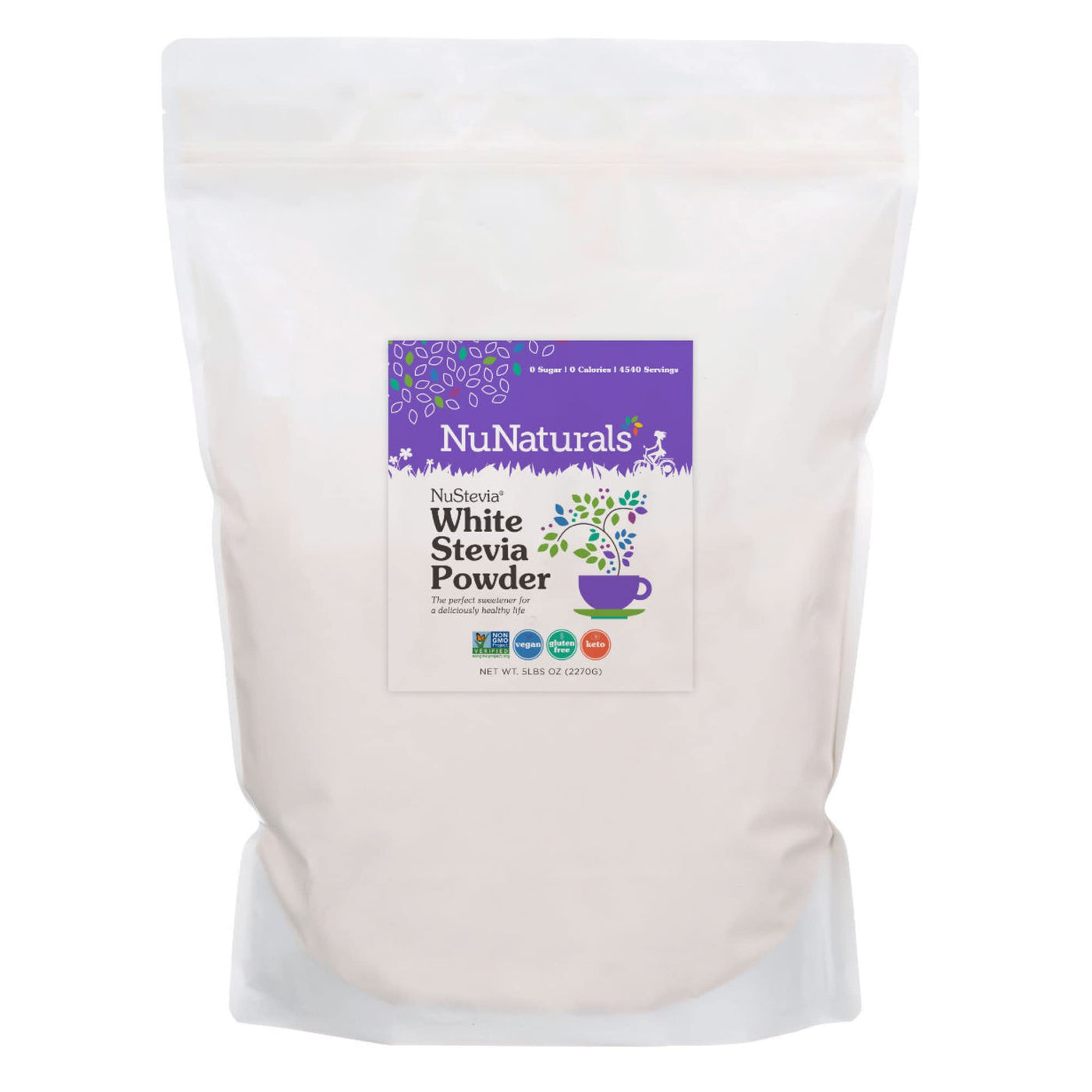 Nunaturals White Stevia Powder, Plant-Based Sugar Substitute, Zero Calorie Sweetener, 5 Lbs