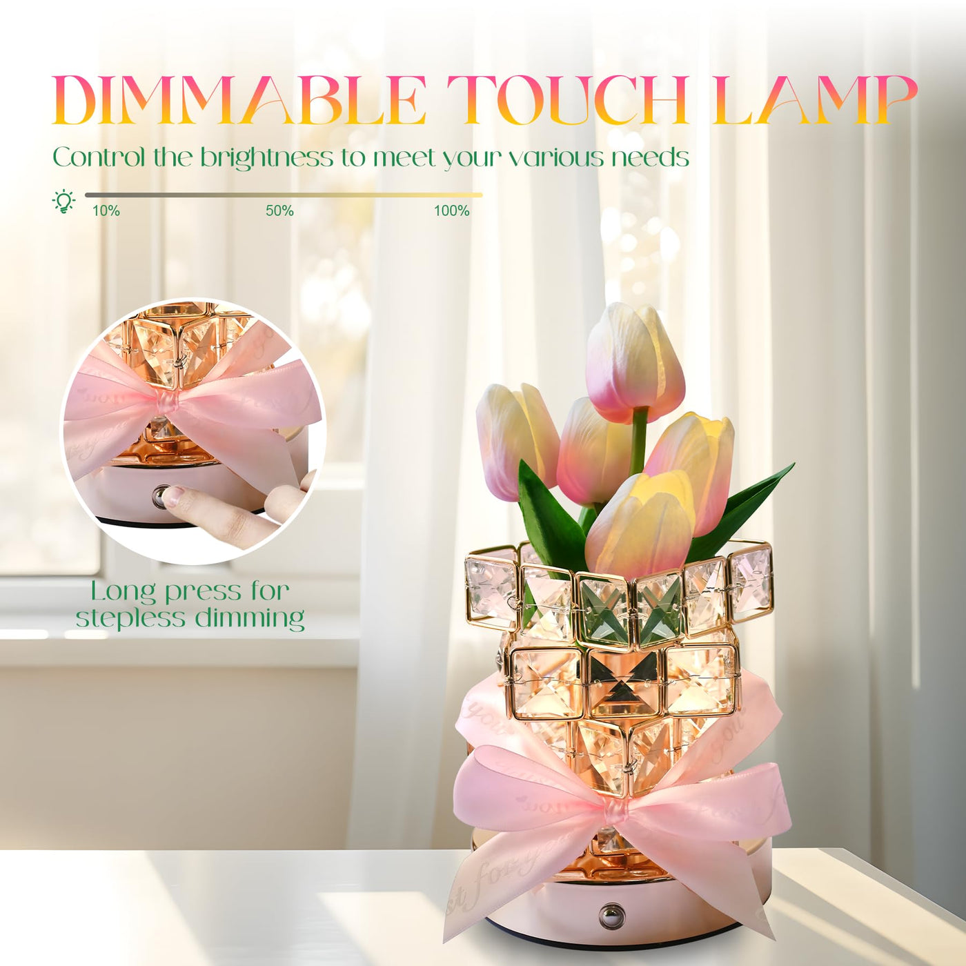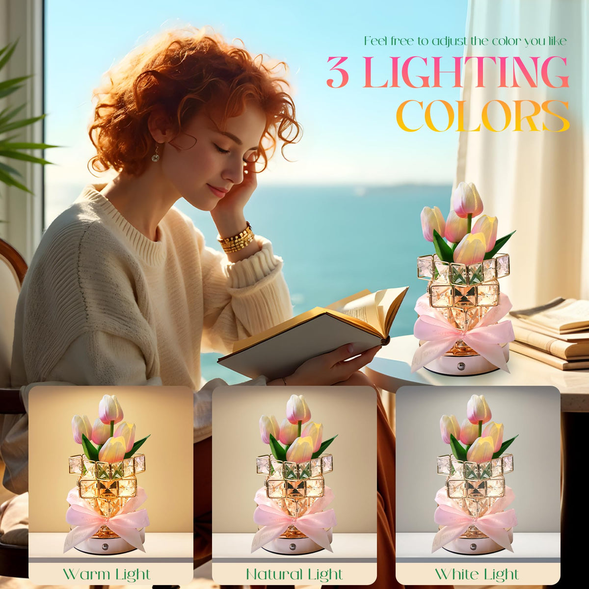 This Tulip Flower Lamp Is Not Only A Lamp, But Also A Love That Never Fades. The Realistic Artificial Tulips Are Perfectly Combined With The Crystal Clear Crystal Vase Base. It Is Beautiful And Practical. It Is A Unique And Warm Gift For Anniversaries, Birthdays, Christmas, Valentine'S Day, Mother'S Day, Thanksgiving, Halloween, New Year, Etc.The Tulip Night Light Led Decorative Lamp Has Stepless Dimming Function And Provides Three Lighting Modes: Warm Yellow Light, Soft White Light And Daylight White Light (2700K, 4000K, 5000K). Whether It Is A Warm Night, Cozy Reading Time Or A Romantic Dinner, The Tulip Small Table Lamp Is Your Perfect Choice To Create The Most Suitable Lighting Atmosphere!With A Light Touch, You Can Adjust The Brightness And Color Of The Light. The Operation Is Simple And Suitable For Users Of All Ages. Charging Through The Usb Port Is Environmentally Friendly And Energy-Saving, Eliminating The Trouble Of Frequent Battery Replacement.The Tulip Flower Lamp Is D3.9'' X H11.7'', The Perfect Size, And Can Be Used As A Charming Centerpiece For The Living Room, Bedroom, Bedside Table, Dining Room, Study, Bathroom Or Desk Lamp, Adding A Touch Of Romance And Warmth To Your Home Space.This Flower Lantern Is An Ideal Birthday Gift For Women, Use It To Express Your Love For Your Family, Lover Or Friends, Convey Warmth And Blessings. If You Have Any Questions Or Problems With Our Products, Please Feel Free To Contact Us, We Promise To Provide High-Quality After-Sales Service To Ensure Your Satisfaction.