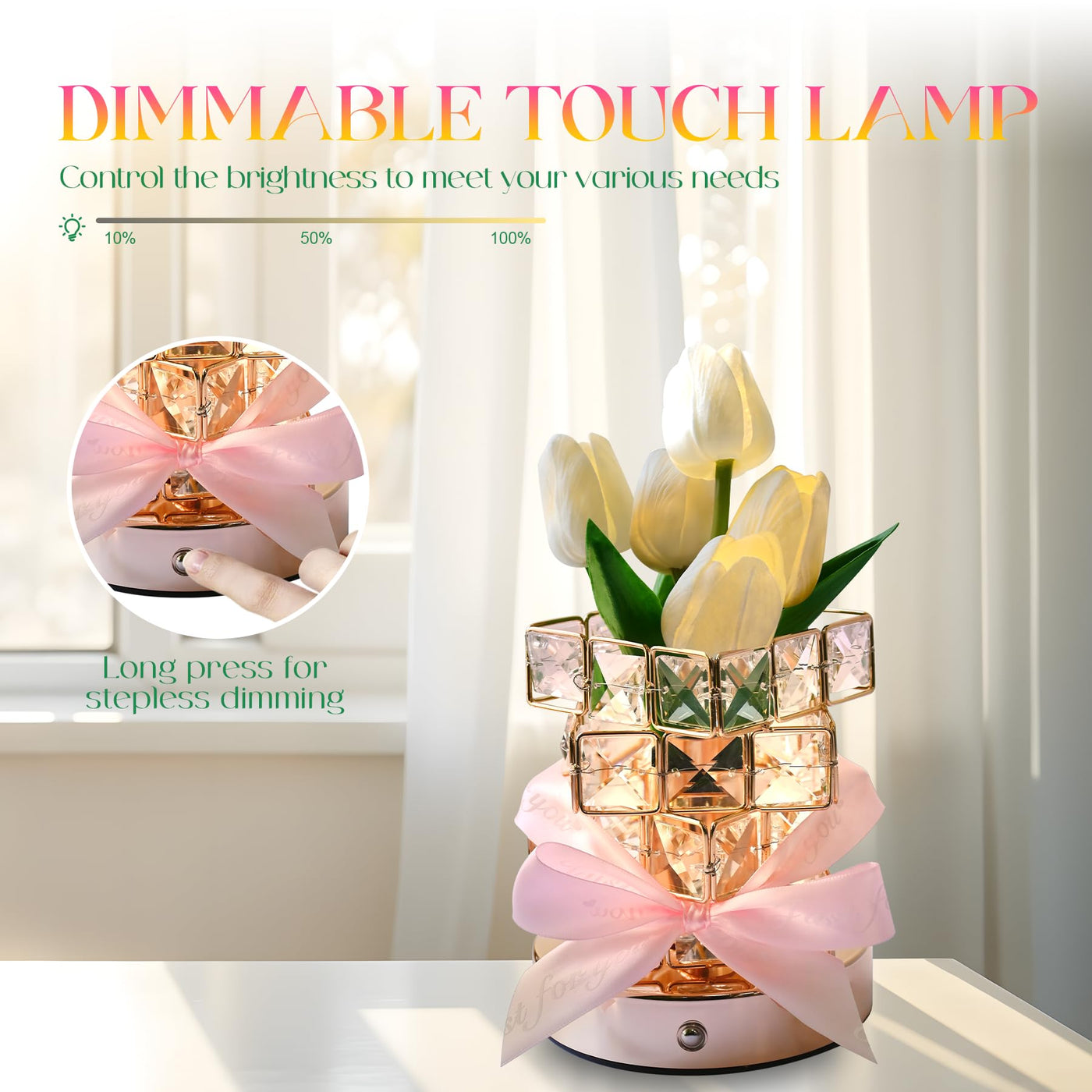 Nuunuy Mother'S Day Gifts For Her, Birthday Gifts For Women,Led Tulip Cordless Night Light Dimmable Crystal Base With Usb Charge