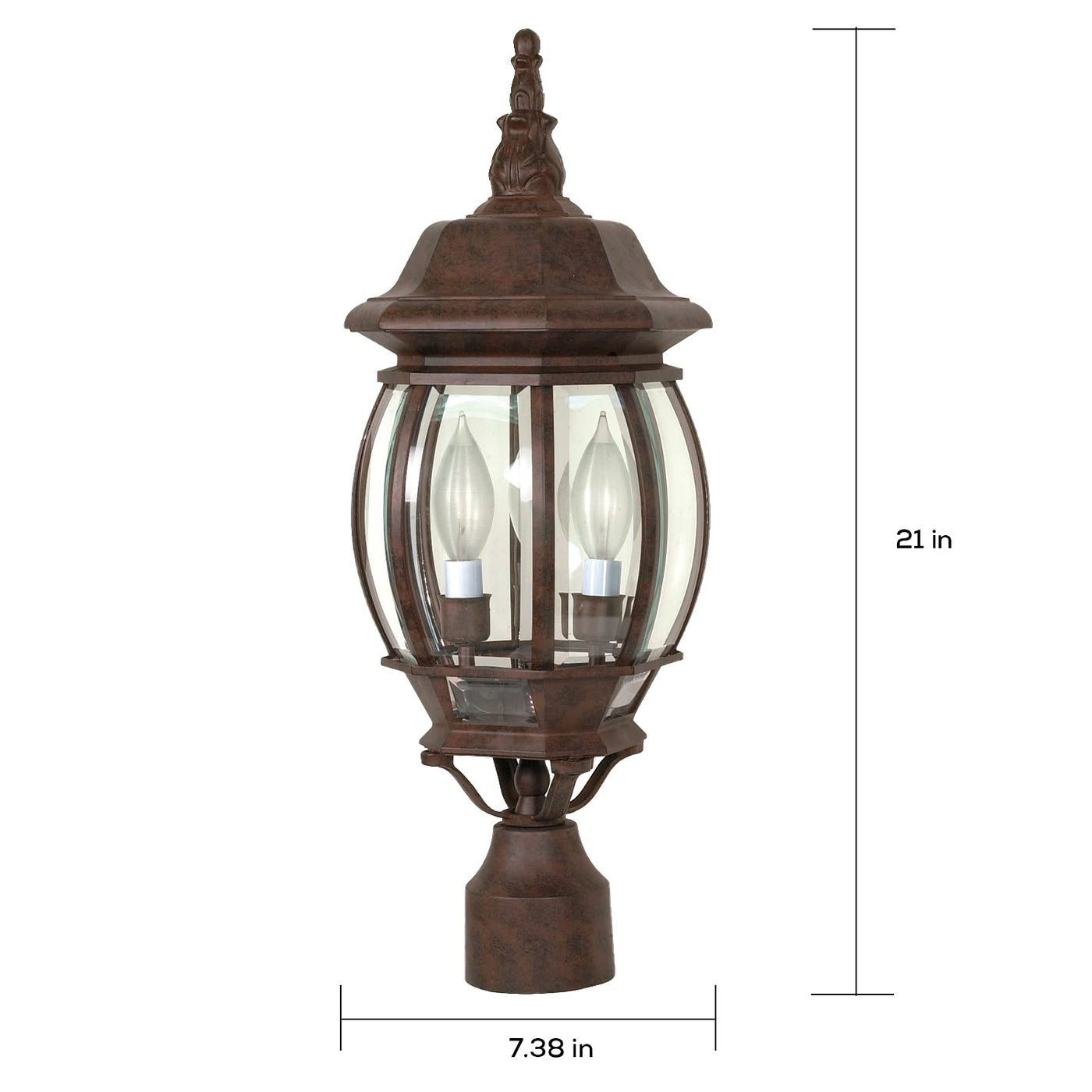 Q: What are the dimensions of the NUVO 60/898 post mount?A: The NUVO 60/898 post mount has a height of 21 inches and a width of 7.4 inches, making it a versatile option for illuminating various outdoor spaces.