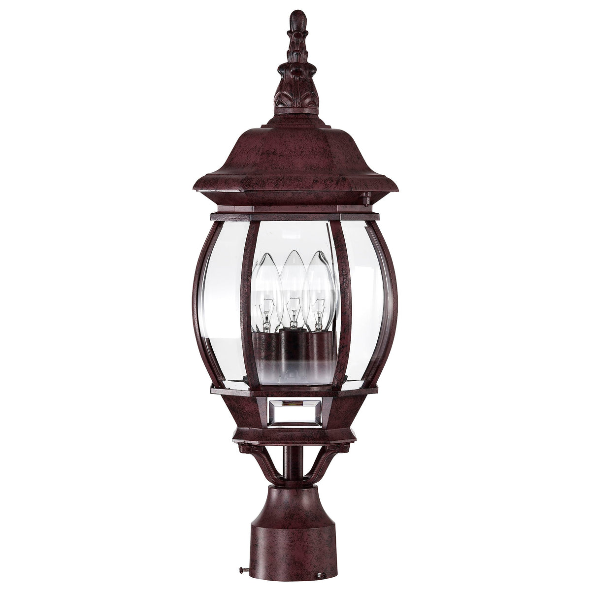 Nuvo Lighting 60/898 Traditional Three Light Post Mount From Central Park Collection In Bronze/Dark Finish, Height: 21. 00 Inches Width: 7. 38 Inches Style: Traditional Light Type: Outdoor Safety Rating: Culus And Safety Listing: Wet Number Of Lights: 3, Bulb Type: B, Bulb(S) Included: No