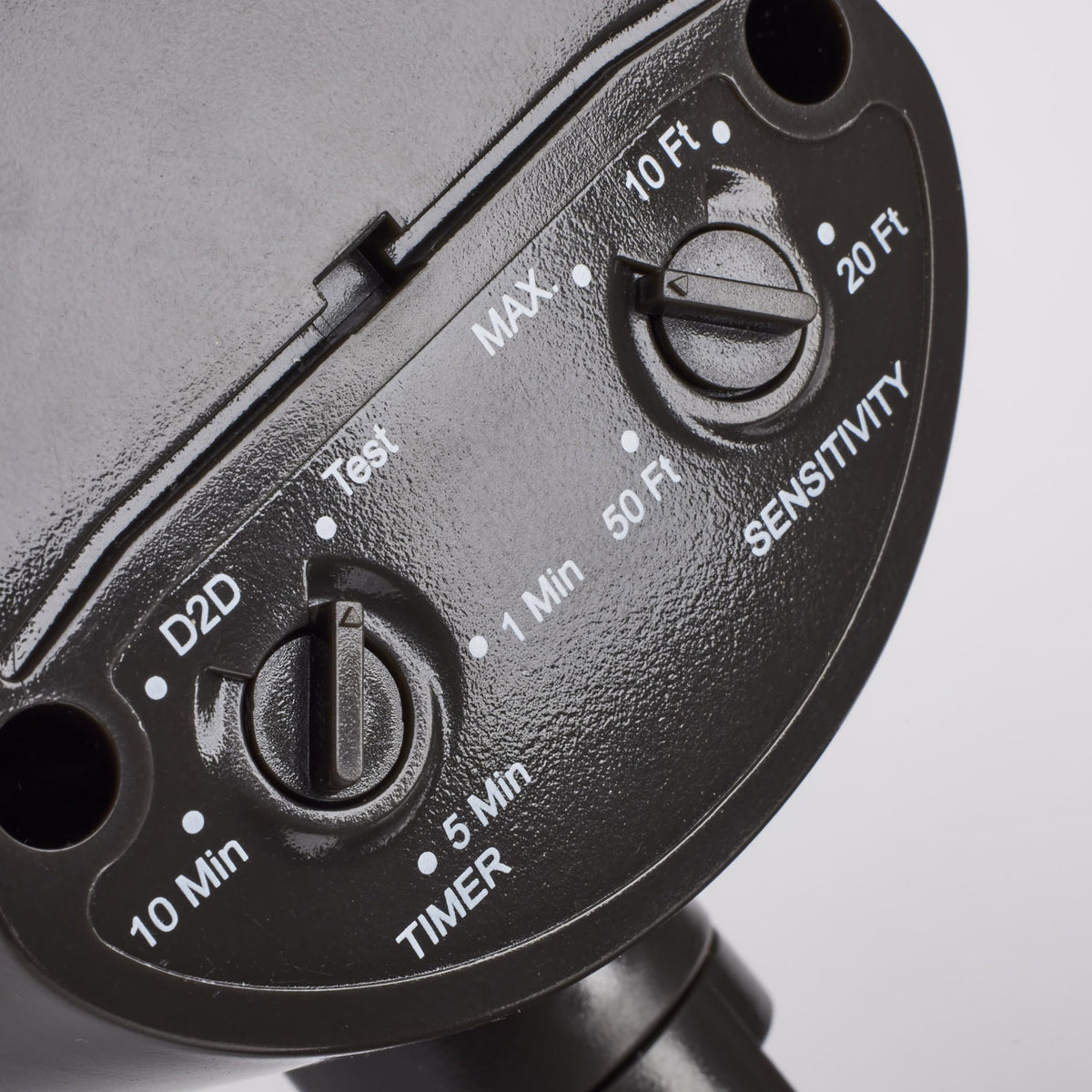 Q: How does the motion sensor work on this security light?A: The motion sensor on the Nuvo 65/219 allows you to set a time delay from 10 seconds to 10 minutes, with a detection angle of 180 degrees and a range of 10 to 60 feet. It also includes a dusk to dawn feature and a manual override option.