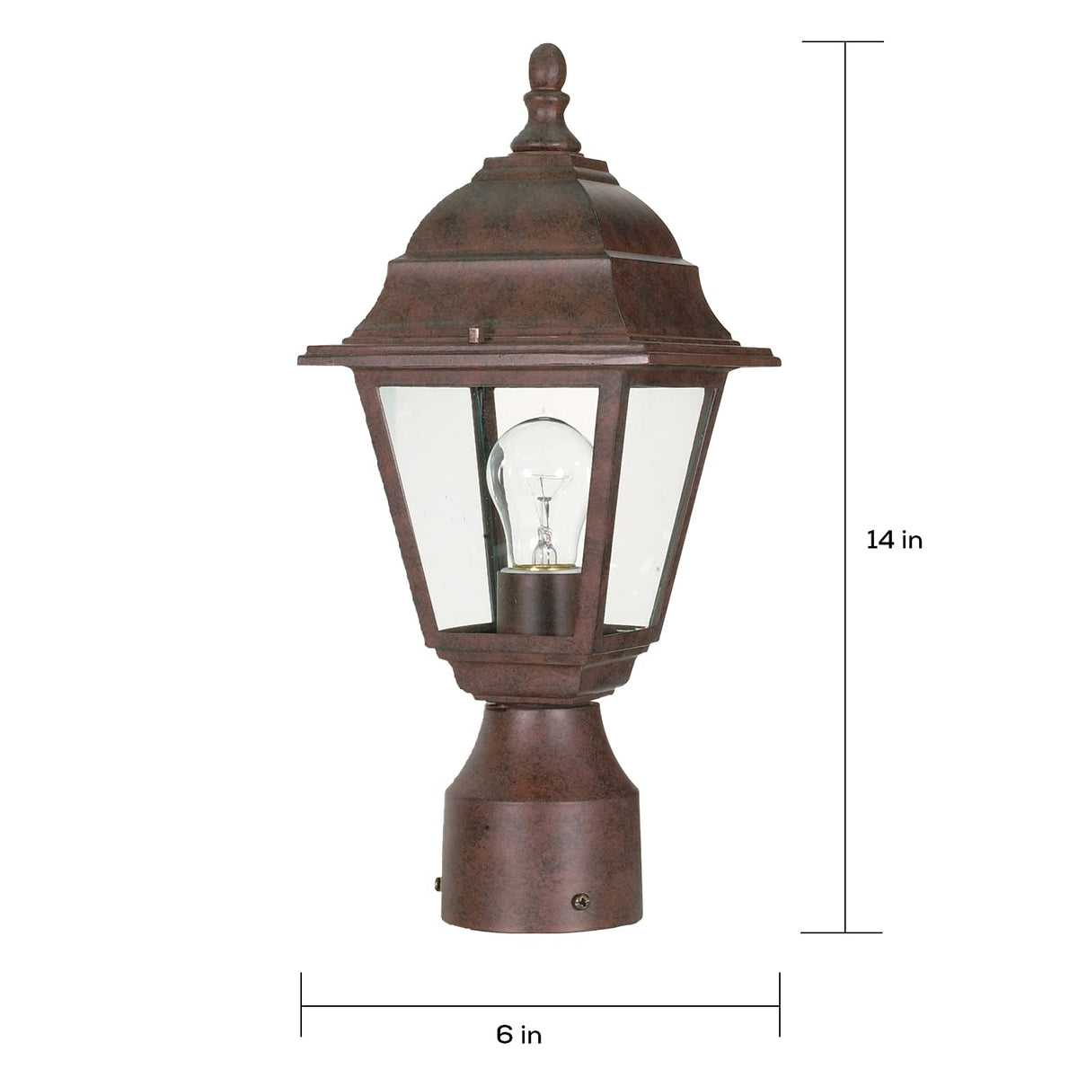 Nuvo Lighting 60/547 Traditional One Light Post Mount from Briton collection in Bronze/Dark finish, Height: 14. 00 inches Width: 6. 00 inches Style: Traditional Light Type: Outdoor Safety Rating: cULus and Safety Listing: Wet Number of Lights: 1, Bulb Type: A19, Bulb(s) Included: No
