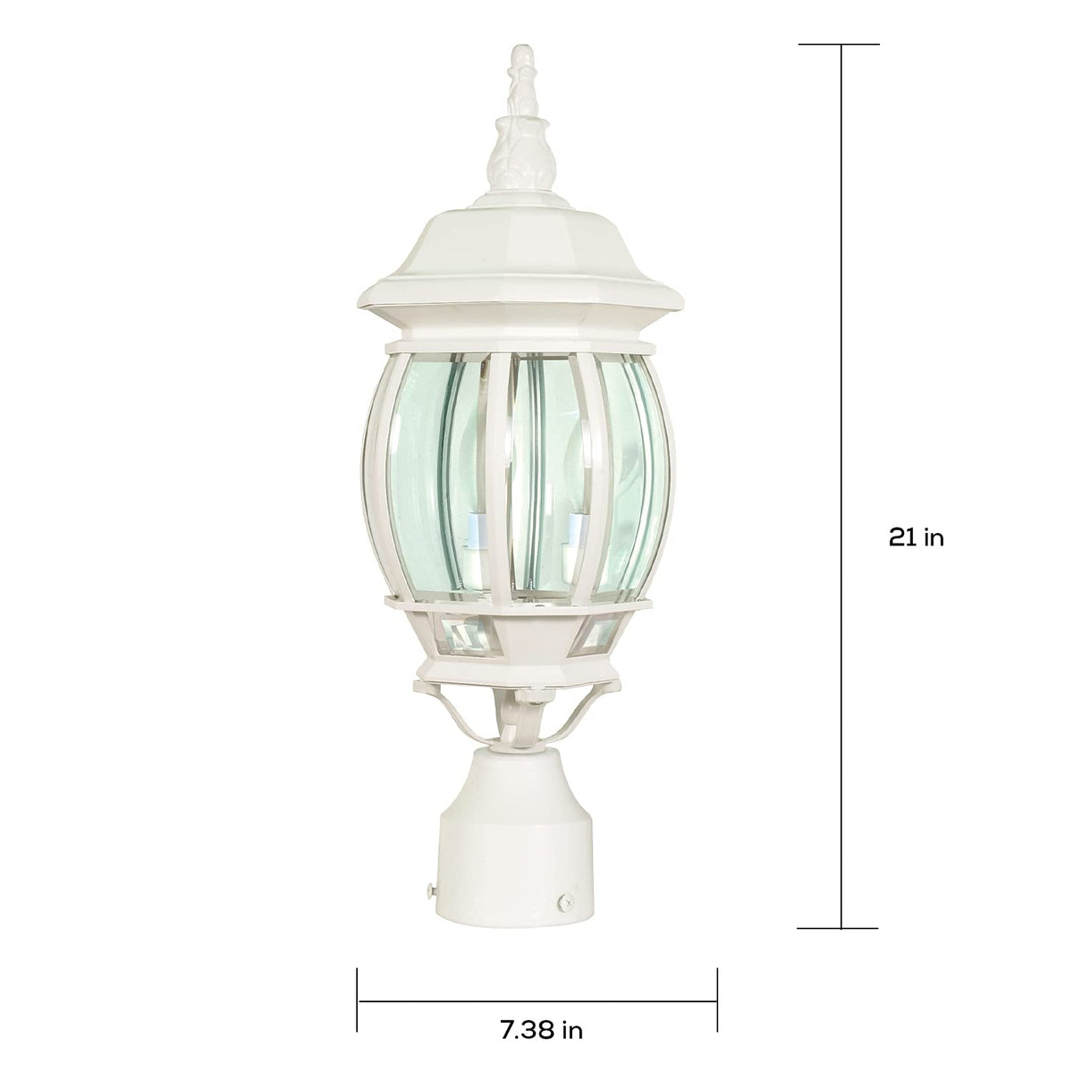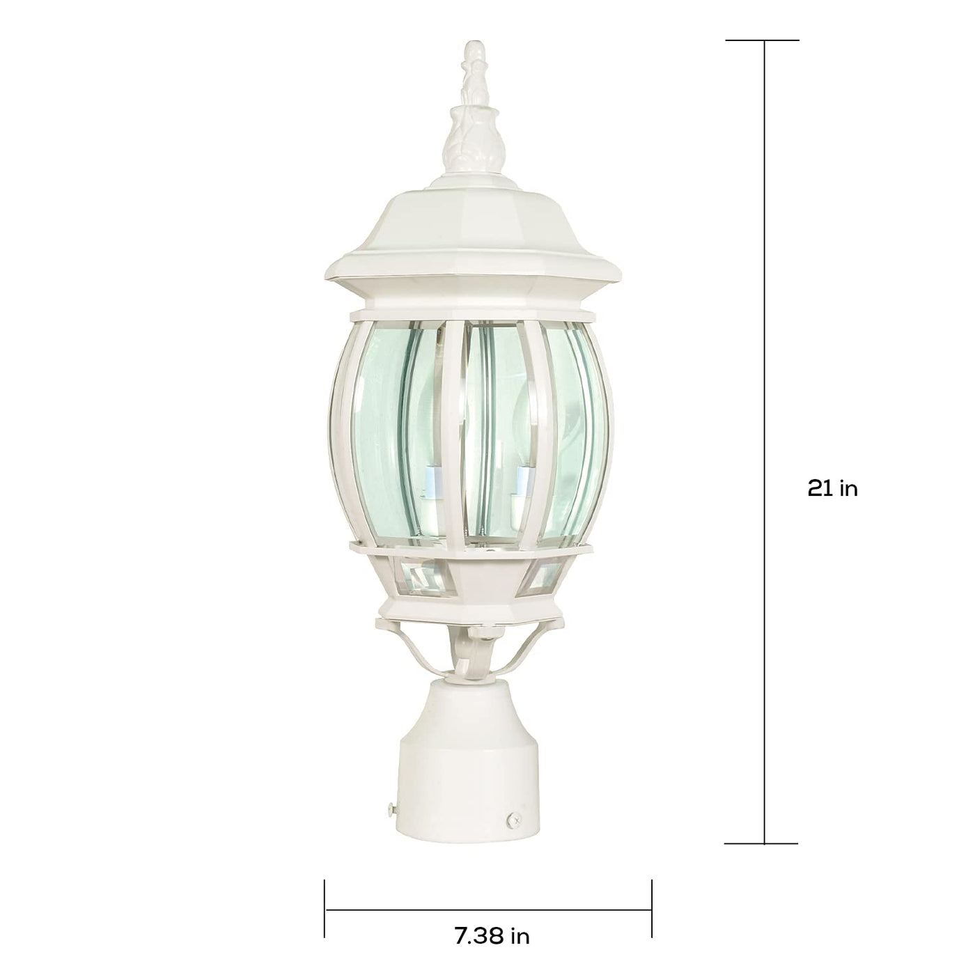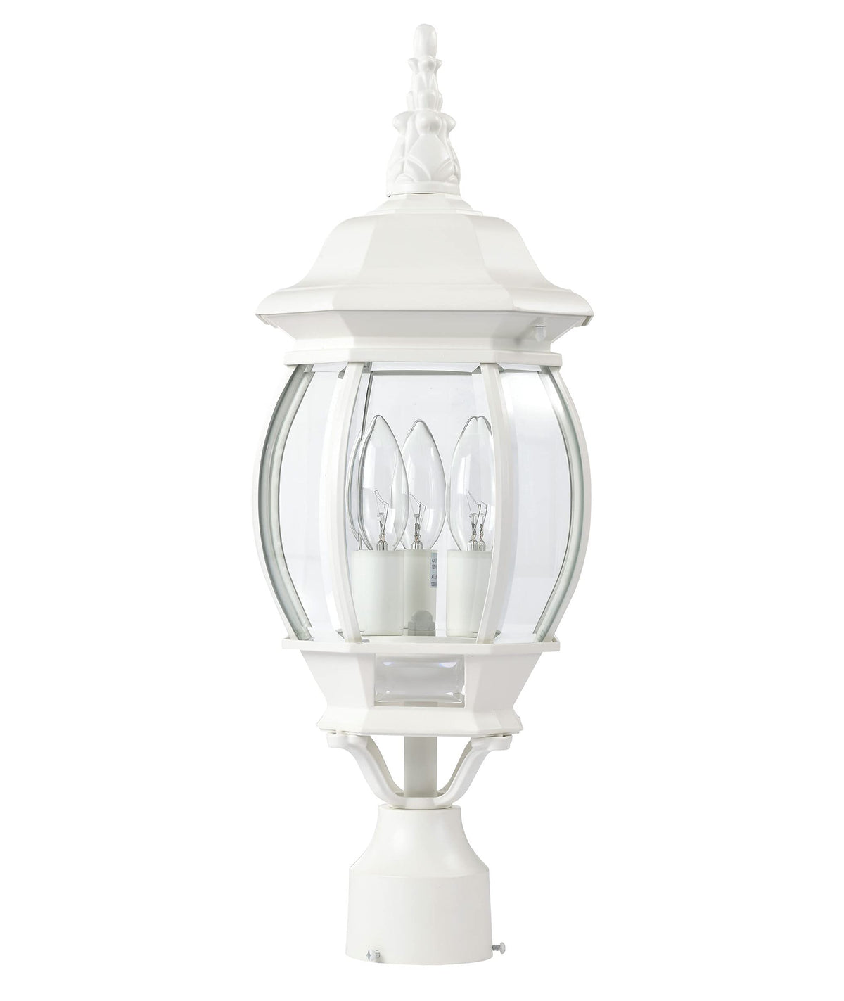 Nuvo Lighting 60/897 Traditional Three Light Post Mount from Central Park collection in White finish, Height: 21. 00 inches Width: 7. 38 inches Style: Traditional Light Type: Outdoor Safety Rating: cULus and Safety Listing: Wet Number of Lights: 3, Bulb Type: B, Bulb(s) Included: No