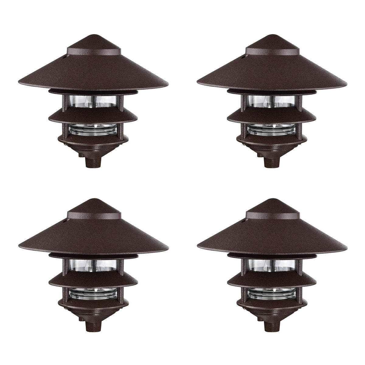 Nuvo Sf76/637/04 Outdoor Pagoda Landscape Pathway Light, 3 Tier - Large Hood, Old Bronze (4 Pack)