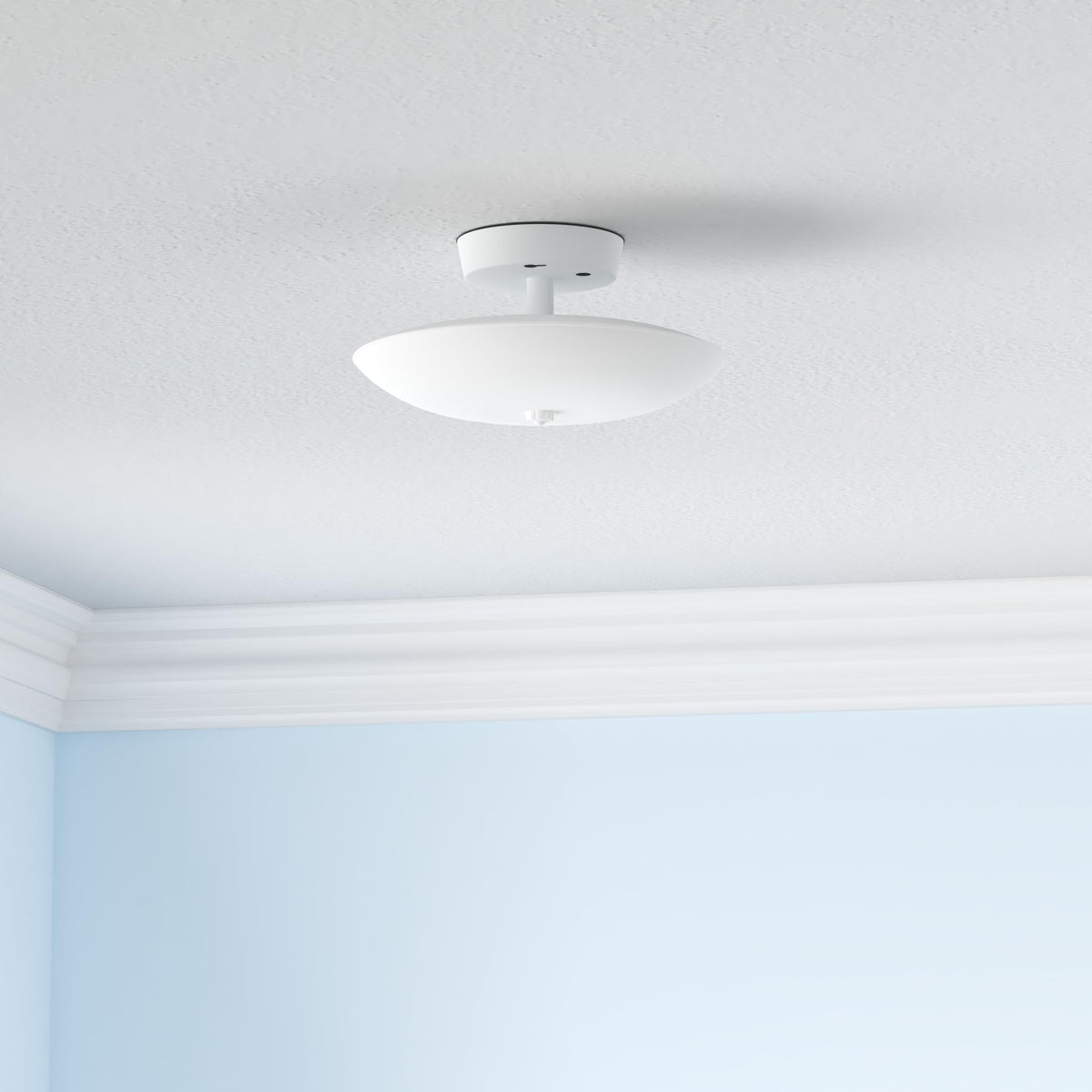 Q: What are the dimensions of the Nuvo SF77/823 ceiling fixture?A: The Nuvo SF77/823 fixture measures 12 inches in width and 4.75 inches in height, making it a compact and stylish option for low ceilings.