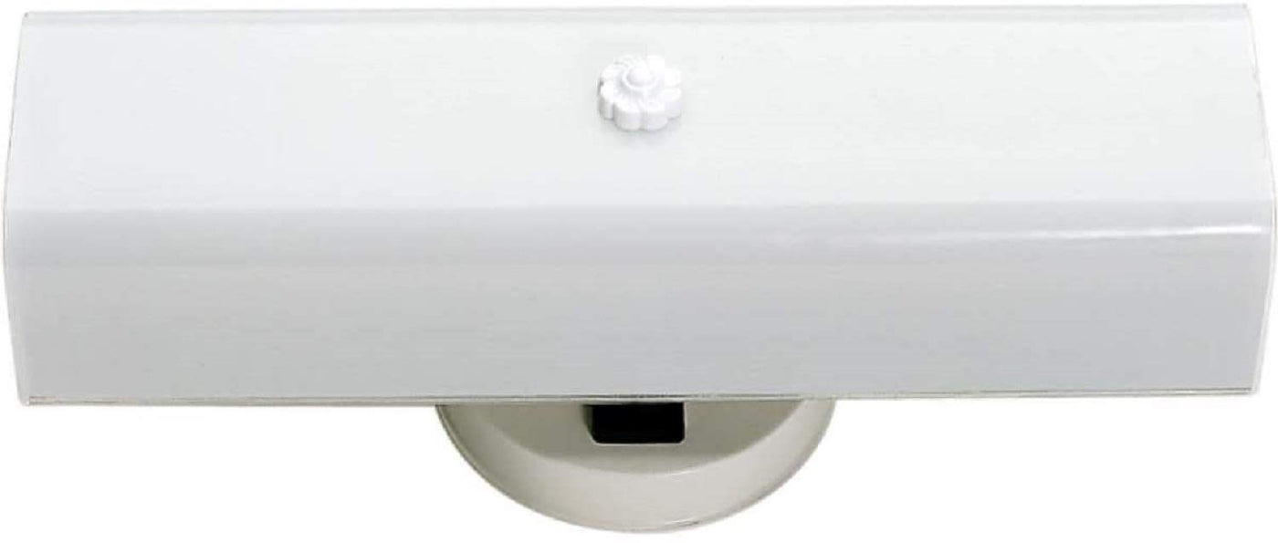 White 14-Inch with convenience outlet with \"u\" channel glass. (2) 60-Watt A19 medium base bulbs not included. No turn knob switch. Fixture needs to be hardwired.