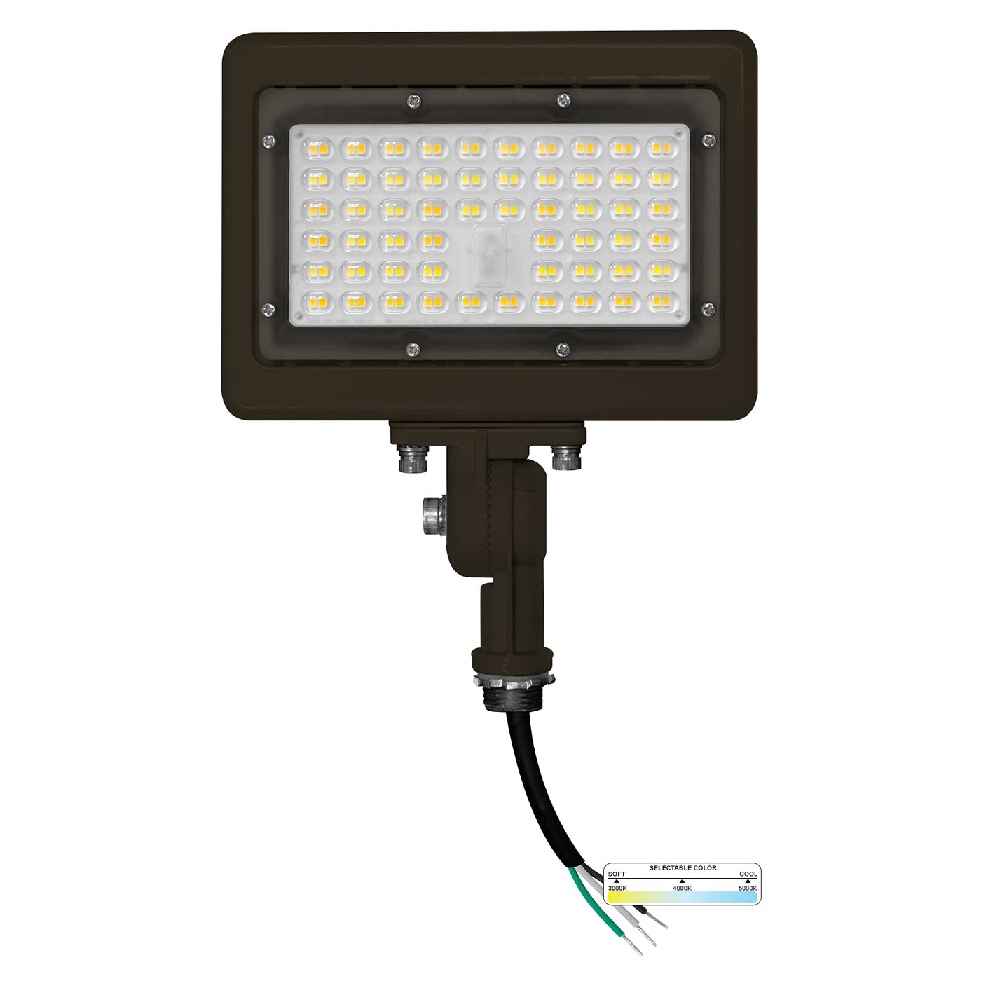 Nuwatt 50W Led Flood Light, 3Cct 3000K/4000K/5000K Selectable, Ip65 Waterproof Lighting, Adjustable Knuckle Mount, 7050Lm, 0-10V Dimmable, 120-277V, Outdoor Security Floodlight For Yard, Bronze, Ul