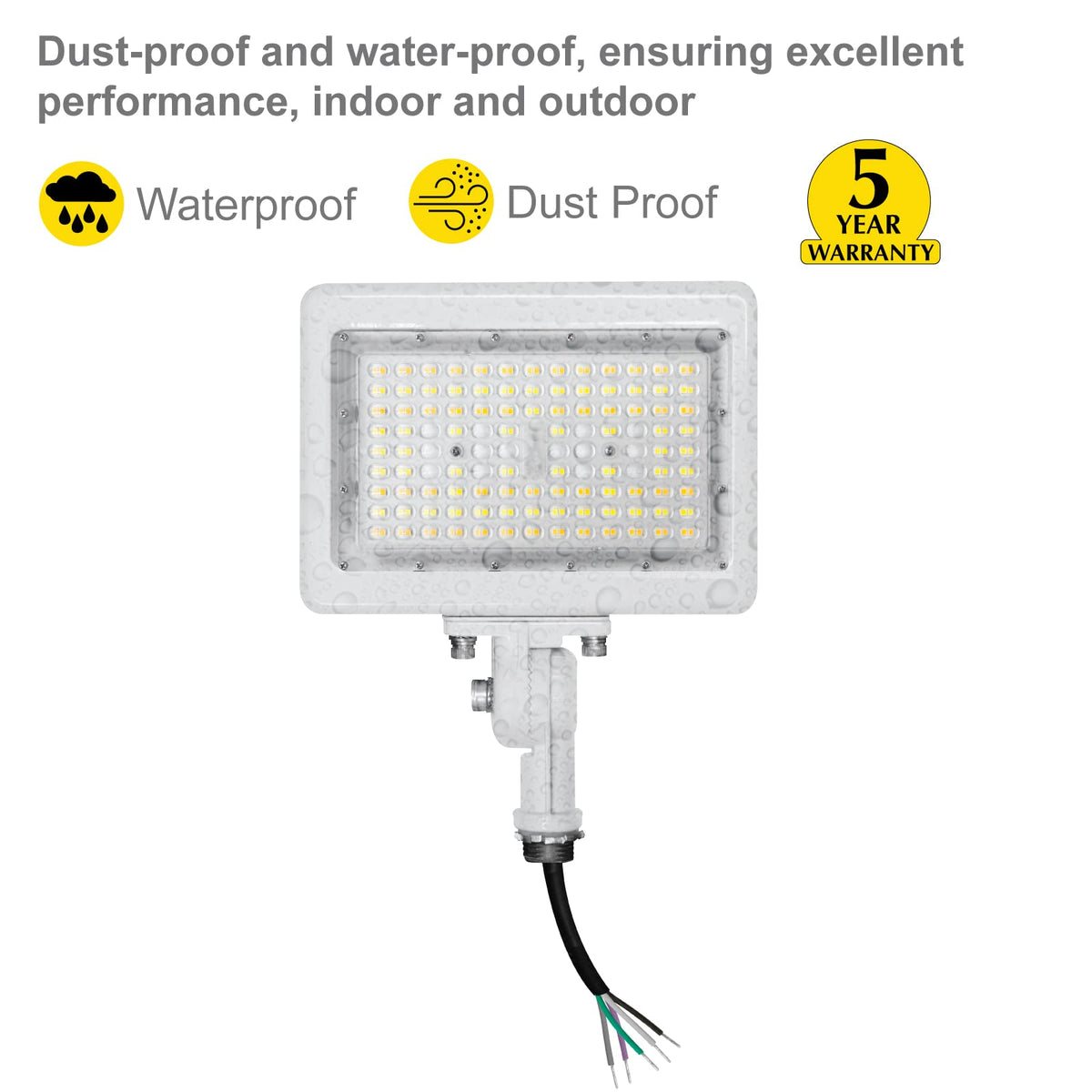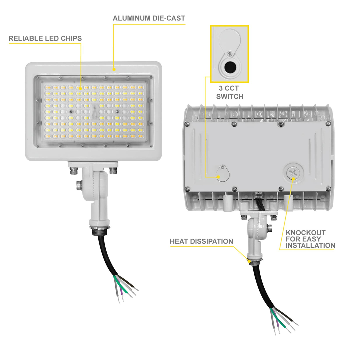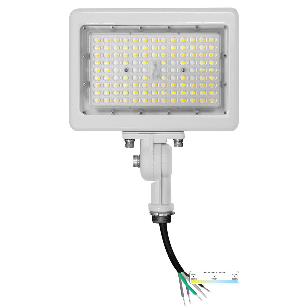 Introducing the NuWatt 90W Waterproof LED Flood Light with Knuckle Mount Arm, perfect for all outdoor applications. An exceptional 3 Color Selectable LED floodlight meticulously designed for both homeowners and pro contractors. It's perfect for outdoor lighting, whether it's for landscape flood lighting, outdoor home lighting, commercial flood lights, security lights, warehouses, construction sites, or backyard flood lighting. This anti rust 90W dimmable LED flood light proudly holds an IP65 wet proof rating, ensuring longevity against rain, snow, ice, heat, and humidity. Experience the bright 12600 lumens emitted by our weatherproof LED flood light. This 5000K floodlight enhances visibility and guarantees a secure environment. But there's more features, the flexibility of our 1/2 inch knuckle mount adjustable flood lights, provide a 180-degree range of motion for mounting on ceilings, floors, walls, decks and flagpoles. With Nuwatt Super Bright LED Flood Lights, you can also tune the brightness using a 0-10V dimmable switch, granting you control over your outside flood lighting. Plus, this LED outdoor flood light also features 3 Selectable Color Changing Temperatures. Choose from Warm White 3000K, Cool White 4000K, or Daylight 5000K. Additionally, this 3CCT color changing LED flood light has a voltage range of 120-277V, for smooth installation into any electrical system. Avoiding costly errors and headaches only with Nuwatt commercial grade flood lighting. So make the smart choice and choose reliability, real customer support, and a completely maxed out outdoor flood light. Built to last a lifetime, this heavy duty die-cast aluminum flood light is where dependability meets excellence for an enlightening journey backed by 5 year warranties.