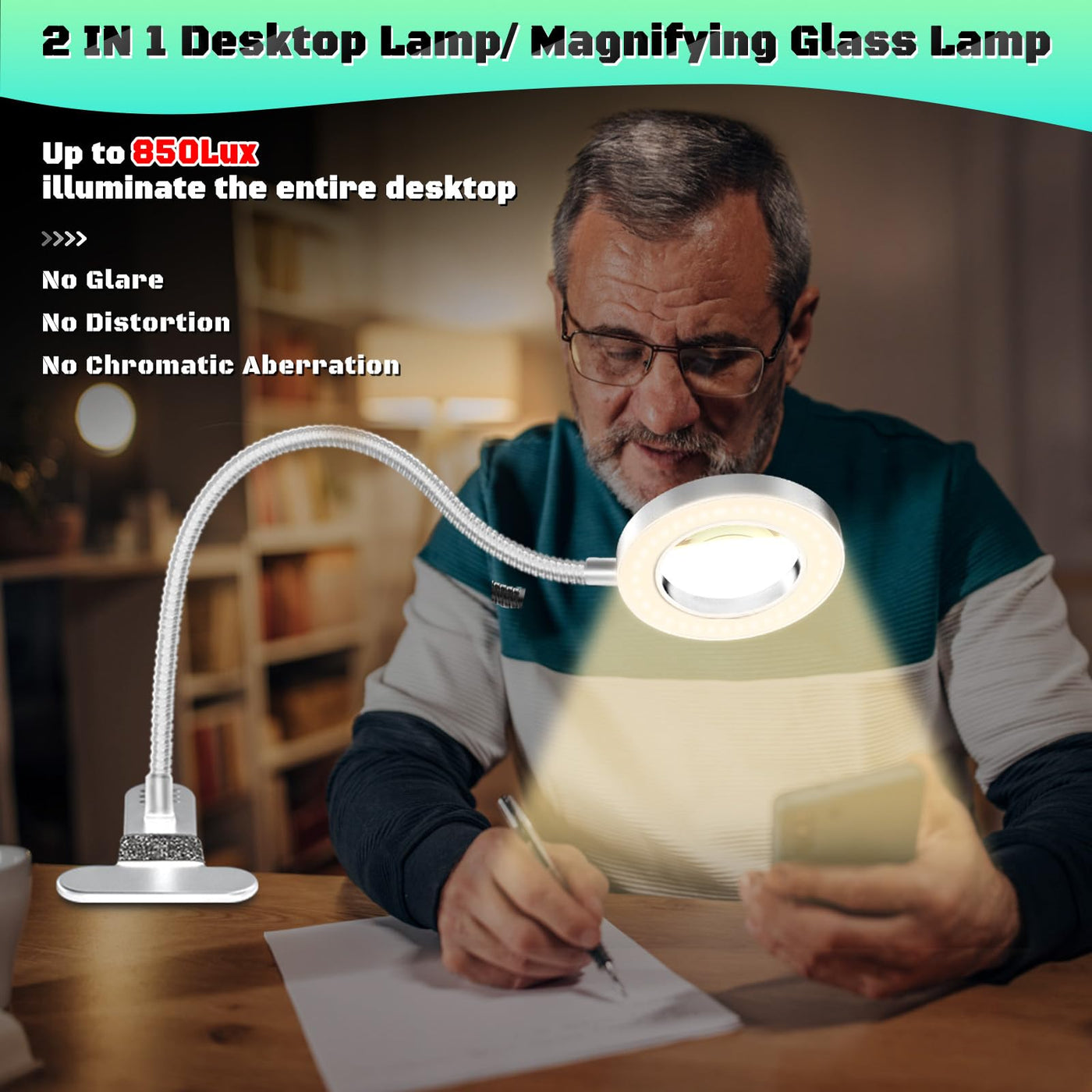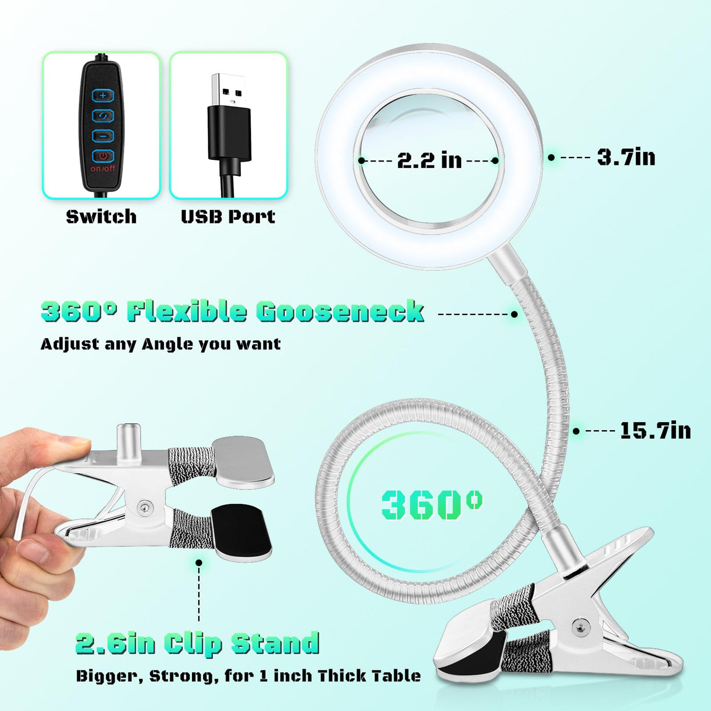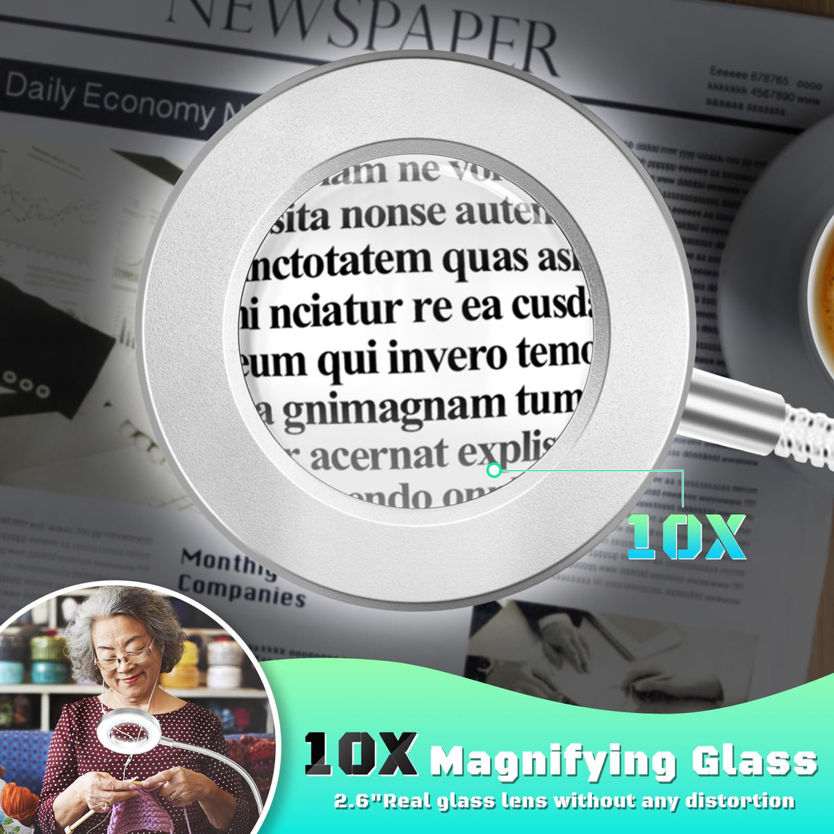 Nzqxjxz 10X Magnifying Glass With Light, Clip On Mganifier With Light, 48 Led Desk Lmap Magnifying Glass Wtih Clamp, 3 Modes Dim