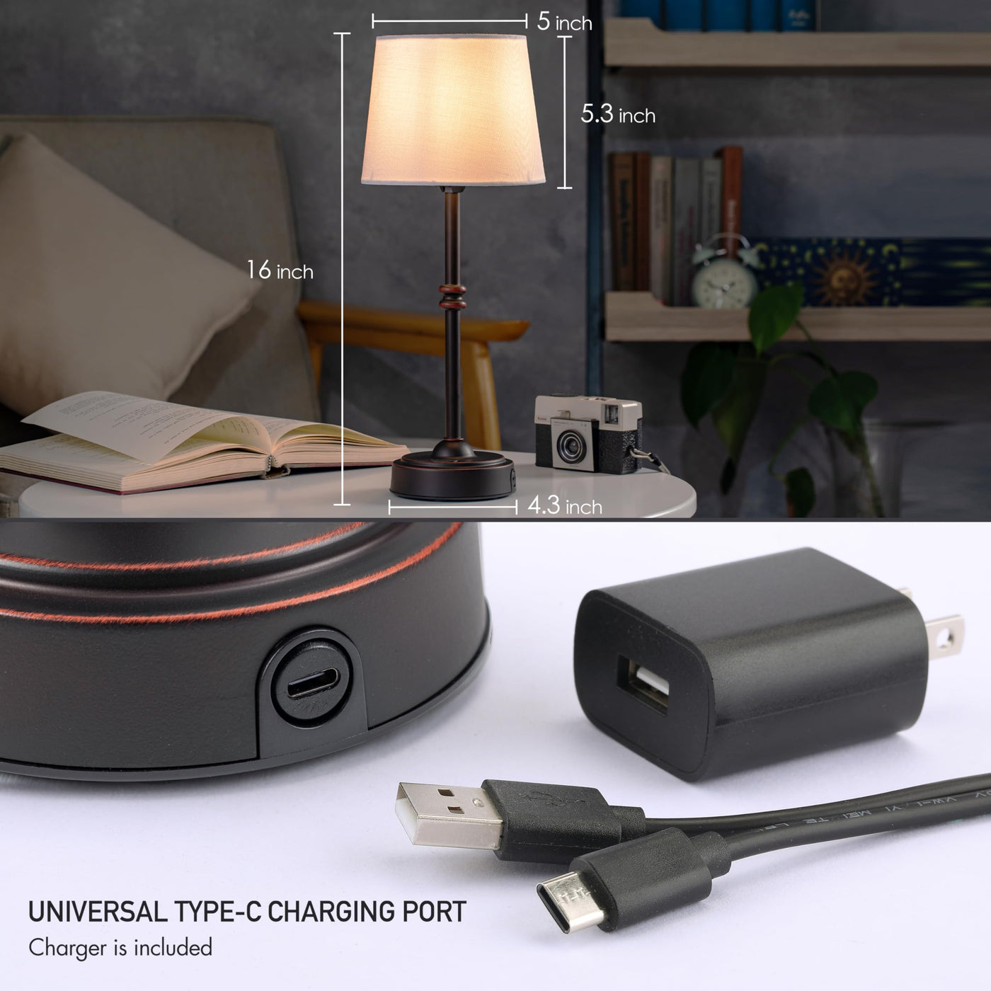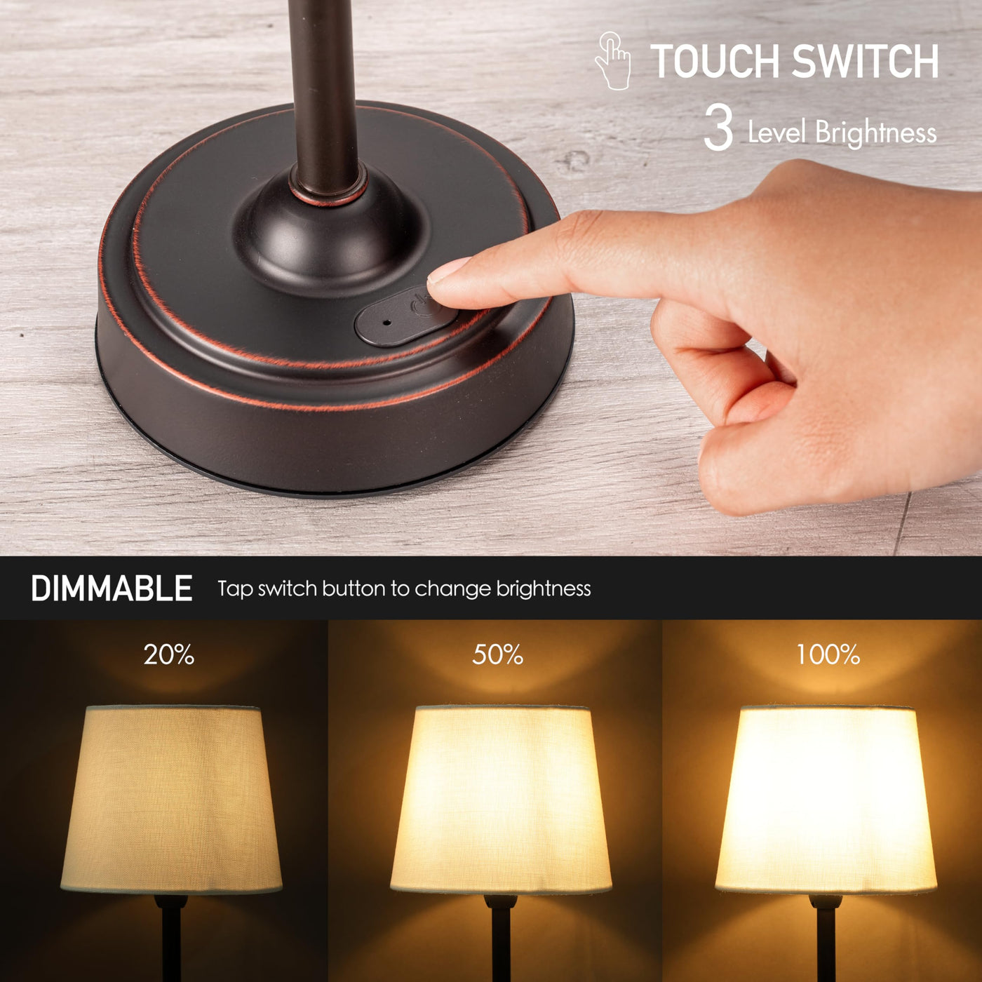 O’Bright Seraph - Cordless Led Table Lamp With Dimmer, Built-In Rechargeable Battery, 3-Level Brightness, Patio Table Lamp, Bedside Night Lamp, Ambient Light For Restaurant, Oil Rubbed Bronze