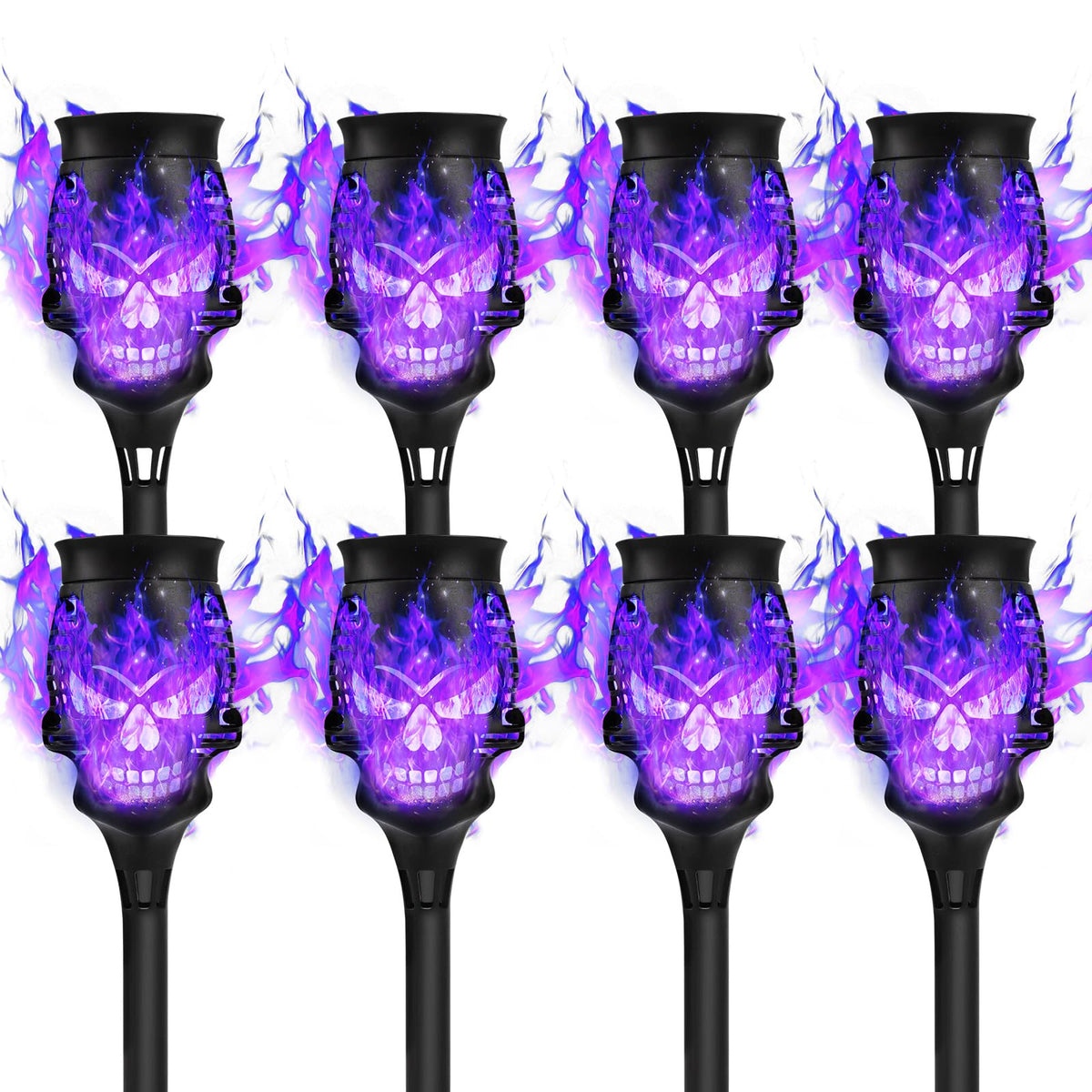 Oalysam Spooky Skulls Solar Torch Lights - 8-Pack Flickering Flame Torches for Enchanting, Waterproof Outdoor Solar Powered Ligh