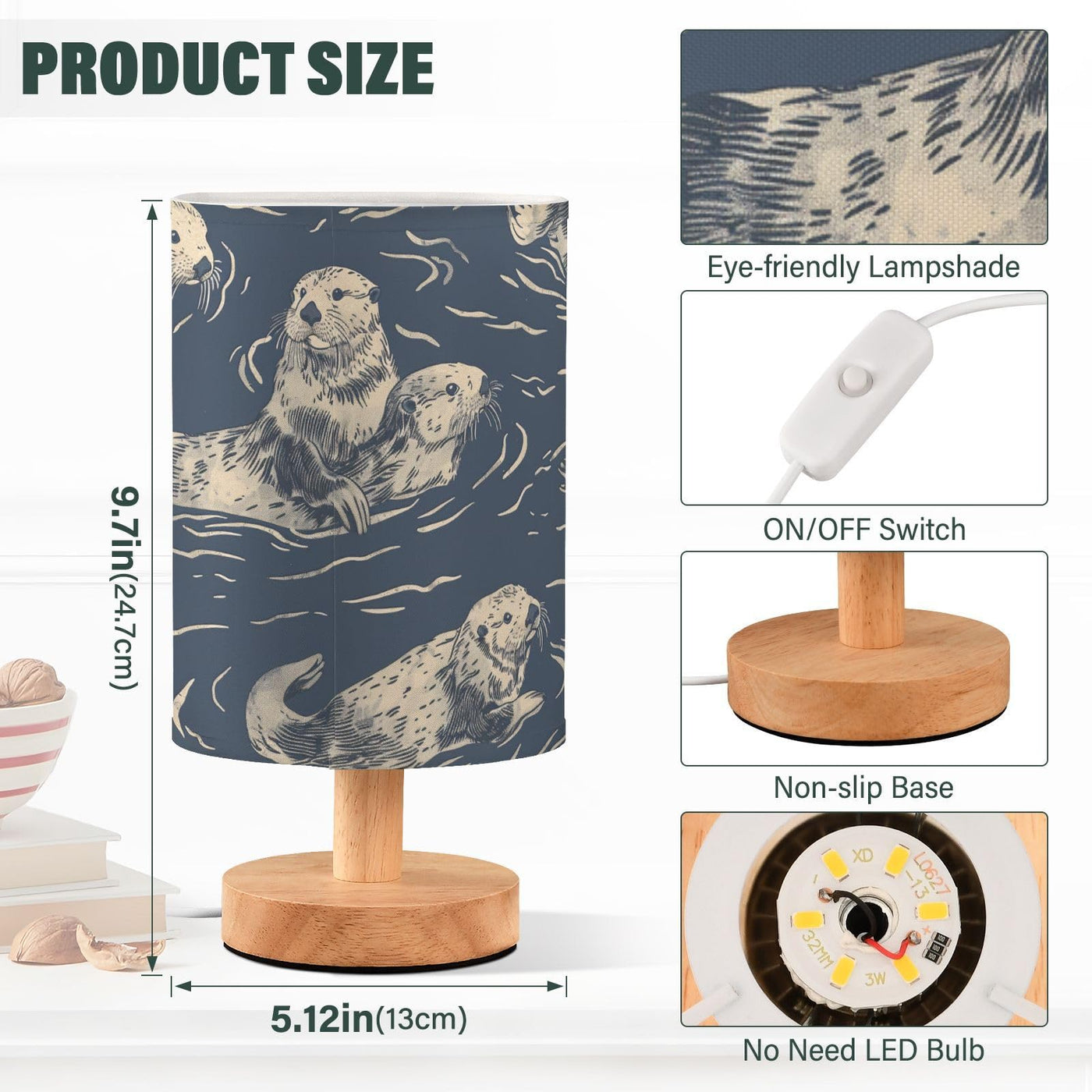 Oarencol Bedside Table Lamp Sea Otter Animal Blue Nightstand Lamp With Wood Desk Lamps For Bedroom Living Room Nursery Office Ho