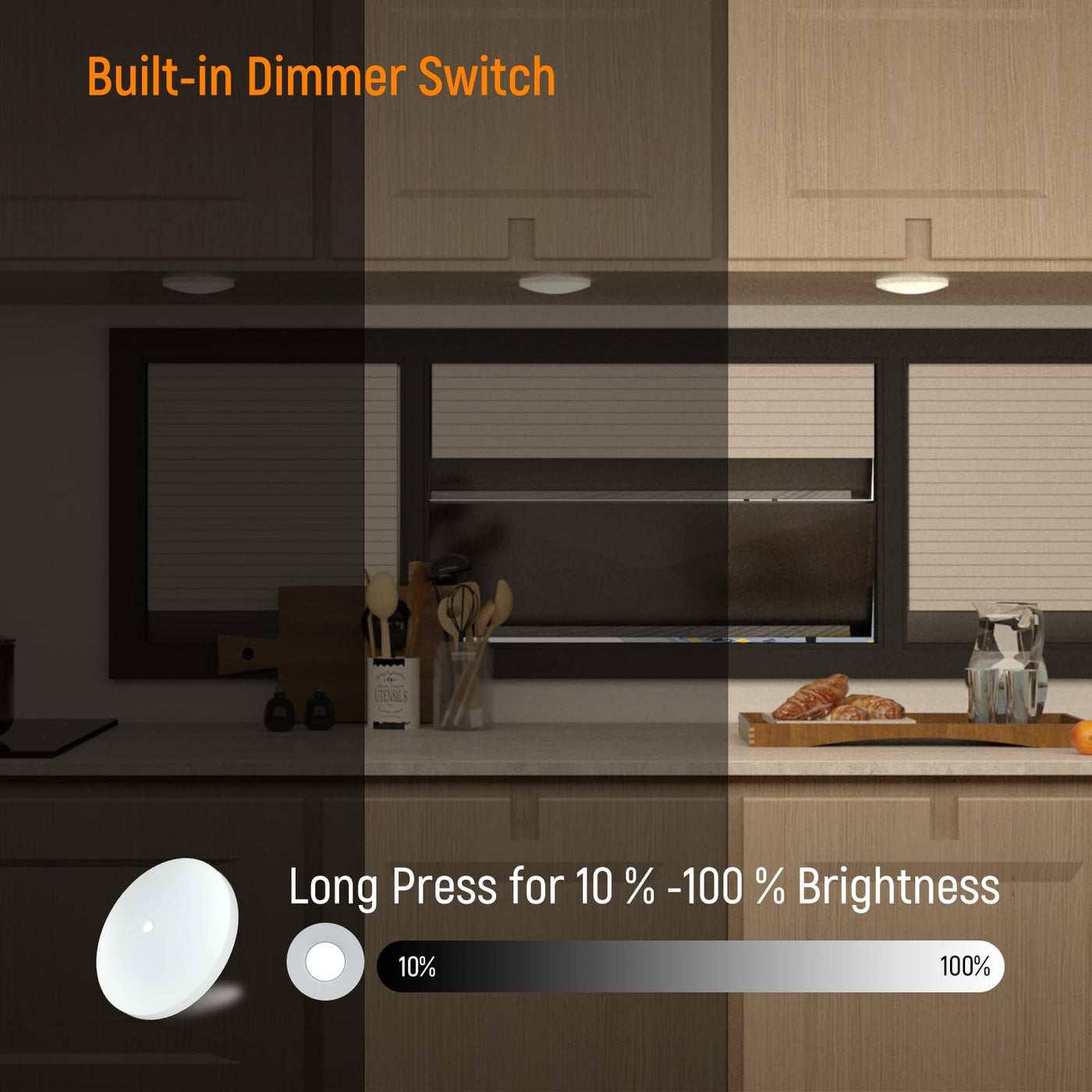 Easy upgrade your RVs boat lighting to LED with Obeaming super slim LED ceiling lights Features: Individual Control Switch - Each light has press dimmer switch, push switch to turn light on/off, push and hold to adjust brightness. Low Power Draw, High Bright - High efficiency LED bulbs pull very minimal amps while providing bright lighting, greatly save auto batteries. Stylish Slim Design - Only 0.8 inches thickness lightweight down lights, low installation requirements also suitable for limited interior space. Safe and Vibration Resistance - Lightweight and shock-proof design, light fixture has electric surge protection circuit which guarantees safety all the time. Versatile - Easy surface mount installation nicely applicable to cabin, under cabinet, kitchen, closet, RV, boat, roof, sailboat, trailers. Specification: Material: Aluminum and PC Power consumption: 4W Brightness: 400 lumen each light Beam angle: 112 degree Operation Voltage: DC 10-24V Switch: Press on/off/dimming Color Temperature: 3200K (warm white), 6000K (cool white) CRI: >82 Dimensions: 4-3/8" (DIA) , 0.8" (H) Mounting screw hole distance: 3-5/8" Surface Mount: screws mounting